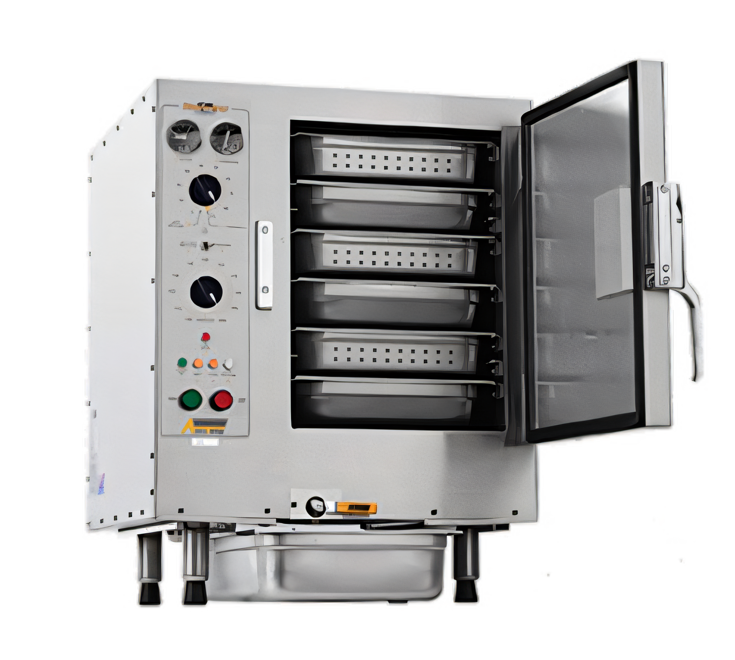 - Three modes in one cabinet — Fast Cook (212 °F), Low-Temp Steam (150–200 °F) & variable Hold.
