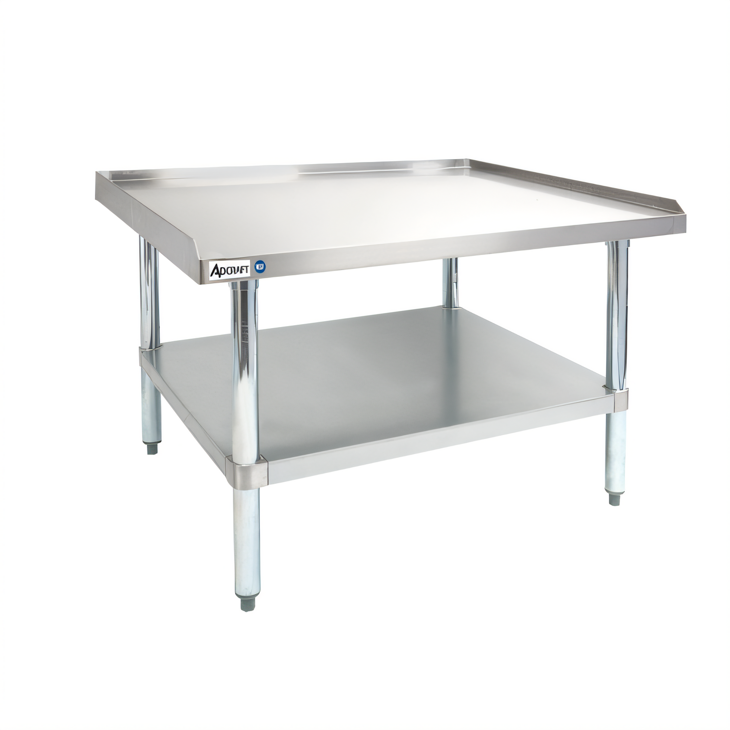 Equipment Stand, 30" x 60" x 24", top shelf: 800 lbs capacity, heavy duty 16 gauge stainless steel, undershelf: 600 lbs capacity, galvanized steel, support beams, aluminum undershelf corners, (6) 1-5/8" dia. adjustable legs, ABS bullet feet, includes: screws & hardware, NSF