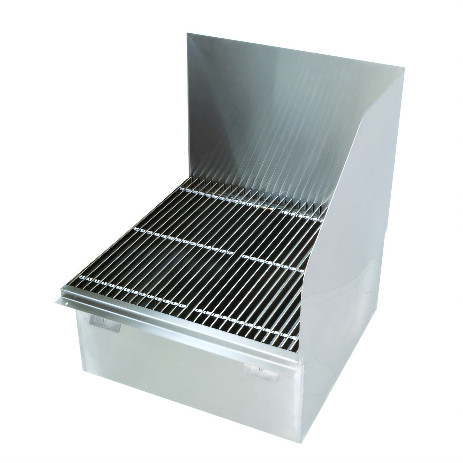 - Two-piece, removable “subway-style” stainless steel grate (21 3⁄16" × 21 3⁄4") prevents caster hang-ups and lifts out for quick cleaning.