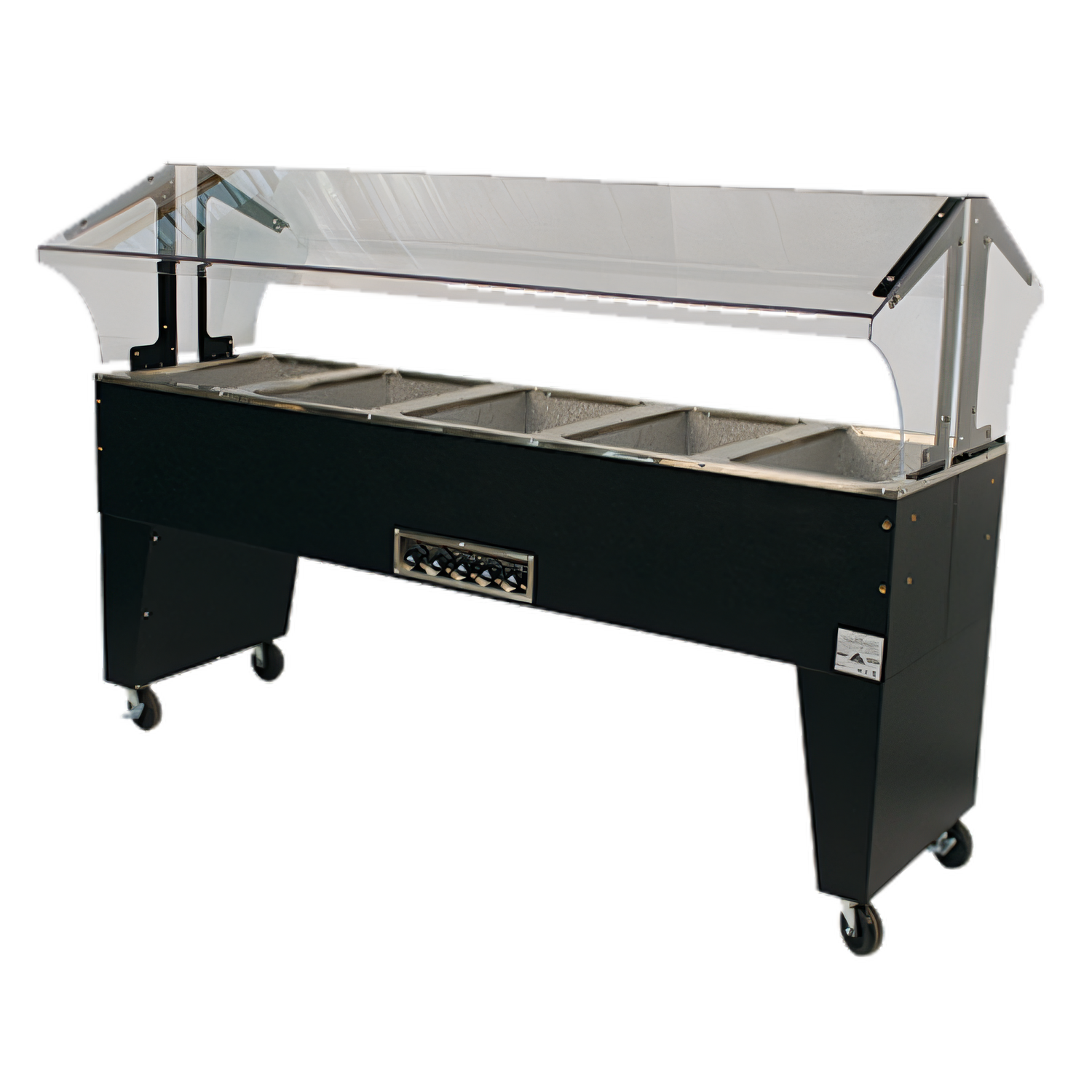Advance Tabco Model B5-240-B-S | 208-240 VBuilt for high-volume cafeterias, catering lines and grab-and-go concepts, the Triumph Supreme mobile buffet keeps five full-size food pans at safe serving temperatures while letting guests access product from both sides of the line. Rugged stainless steel where it matters, easy-to-clean food shields, and smooth-rolling casters make this the go-anywhere hot food solution you can roll out in seconds.