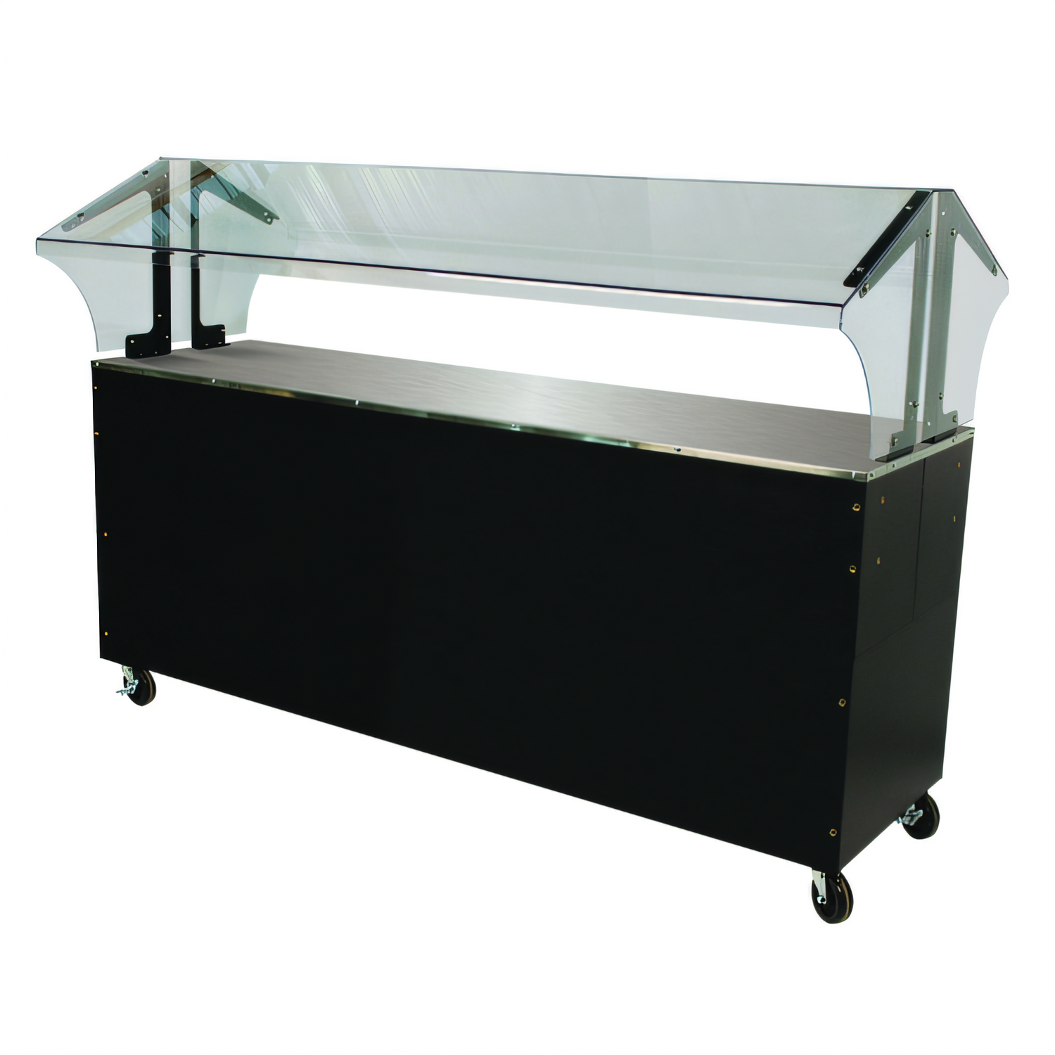 Advance Tabco Model B5-STU-B-SB | NSF ListedDesigned for operators who need the speed of a buffet line with the flexibility to roll it anywhere, the Triumph (Supreme) delivers a rock-solid stainless steel work surface, crystal-clear food protection and a stylish, enclosed base that hides storage and utilities. Just load up to five full-size pans, unlock the brakes and roll your service anywhere profits call.