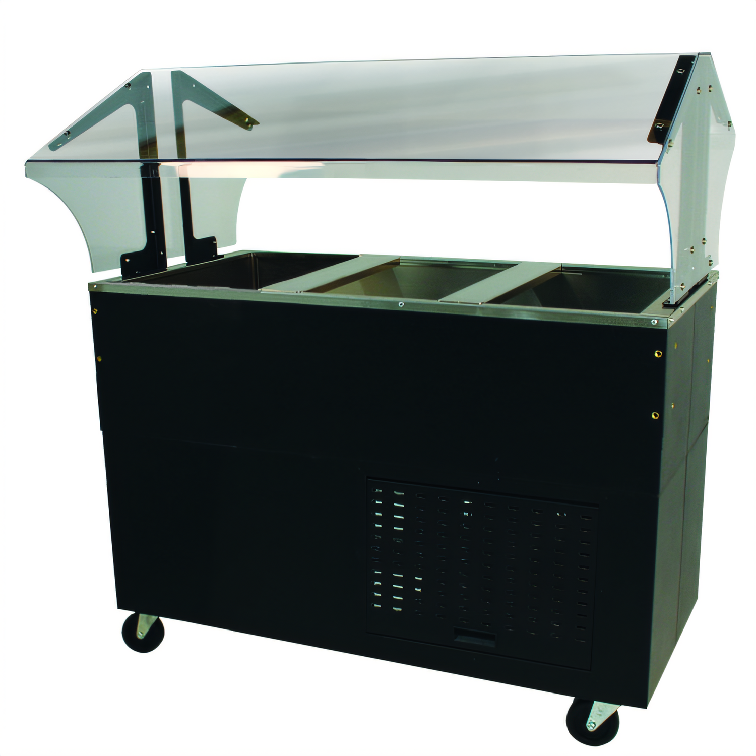 Model BMACP3-B-SB • ETLus ListedKeep grab-and-go salads, fruit and other chilled menu favorites safely below 41 °F while presenting them in a sleek, customer-facing buffet line. Advance Tabco’s mechanically assisted cold pan combines powerful self-contained refrigeration with a durable stainless steel top and a full two-sided sneeze guard—everything you need for a professional cold serving station that rolls anywhere the crowd is.