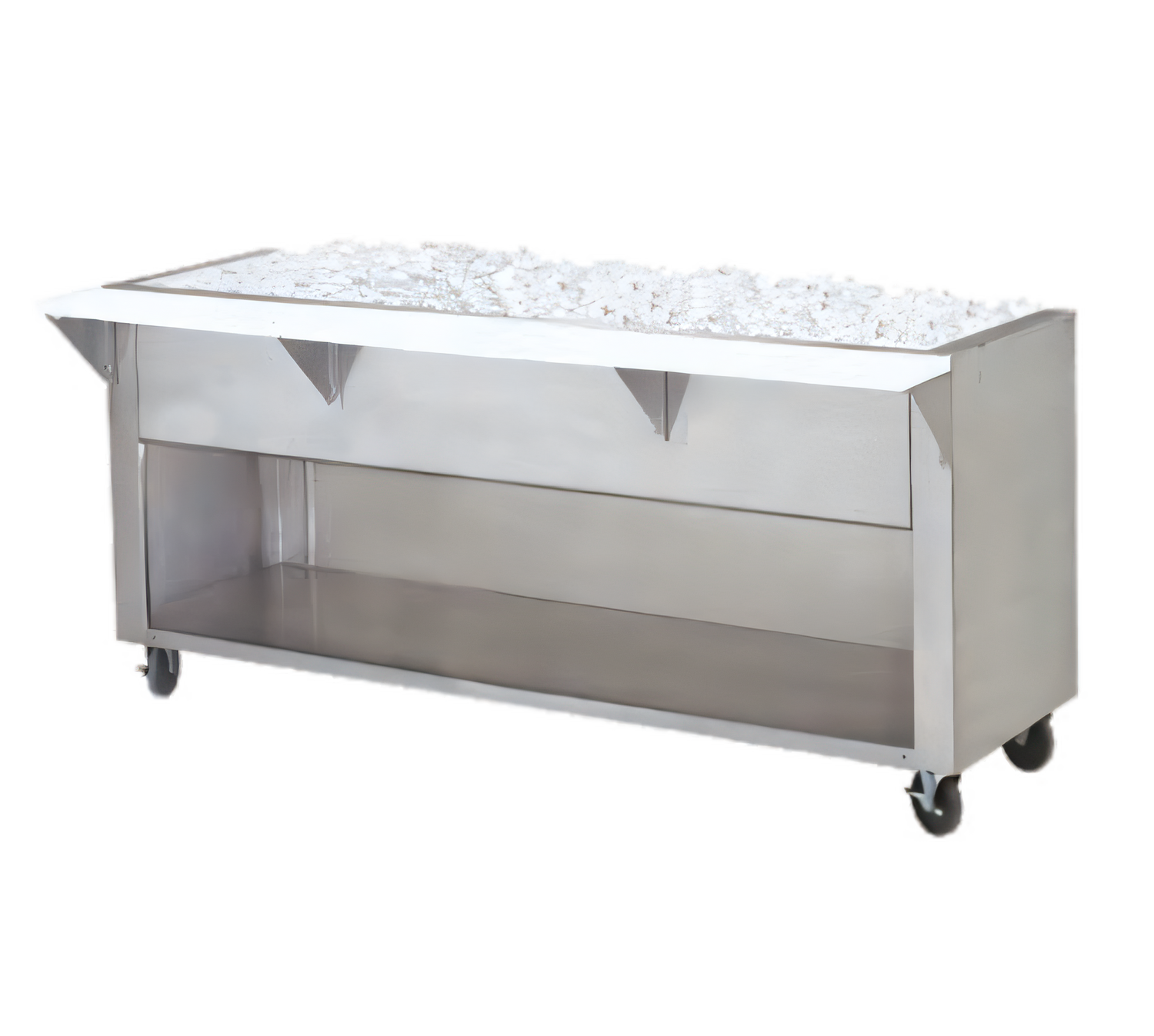47-1/8" W × 30-5/8" D × 34-3/8" H | NSF ListedEffortlessly keep salads, fruit cups, desserts and bottled beverages at ideal serving temperatures—no electricity required. Engineered for busy self-service and grab-and-go stations, the Triumph ice-cooled counter pairs heavy-duty stainless-steel construction with the convenience of a removable poly cutting board for on-the-spot prep and plating.