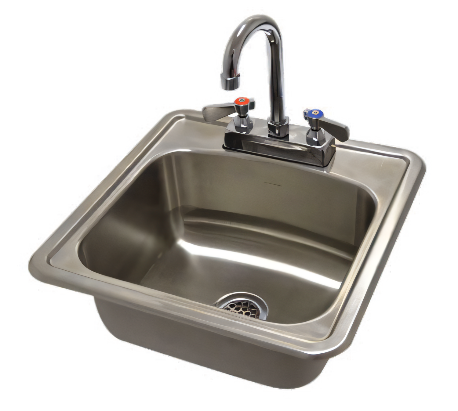 Special Value Drop-In Sink, 1-compartment, 15"W x 15"D x 6" deep (overall), 12-1/4" wide x 10-1/4" front-to-back x 6" deep bowl, no drip self-rimmed edge, 20/304 stainless steel, with 4" on-center deck mounted gooseneck faucet, 3-1/2" basket drain with strainer, NSF