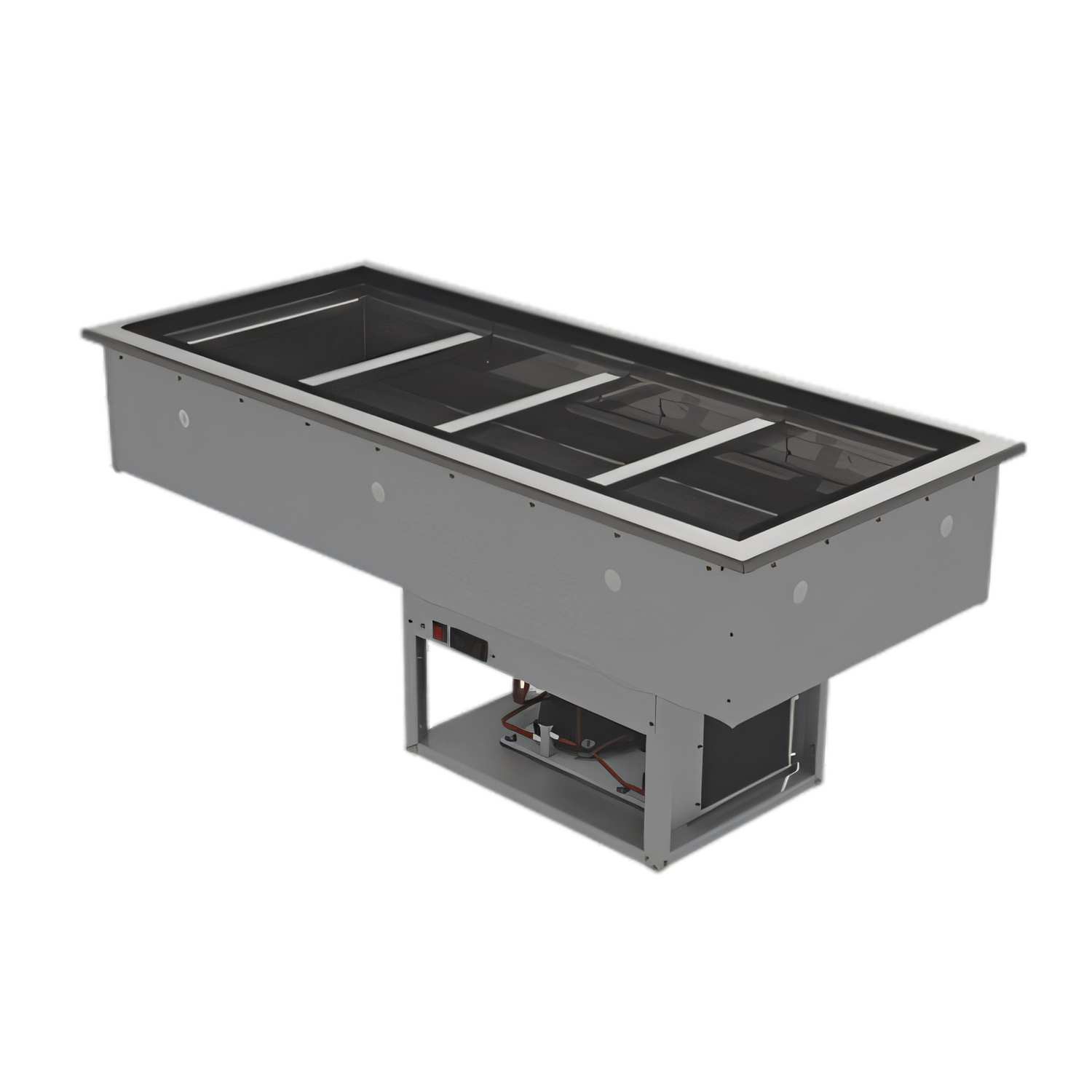 4-Well | 25-1/2" x 59-1/8" Cut-Out | Self-Contained 115 VKeep salads, bottled beverages, toppings and other perishables perfectly chilled while freeing up counter space. The DIRCP-4 installs flush in your countertop and delivers reliable, energy-efficient refrigeration in a sleek stainless-steel package.