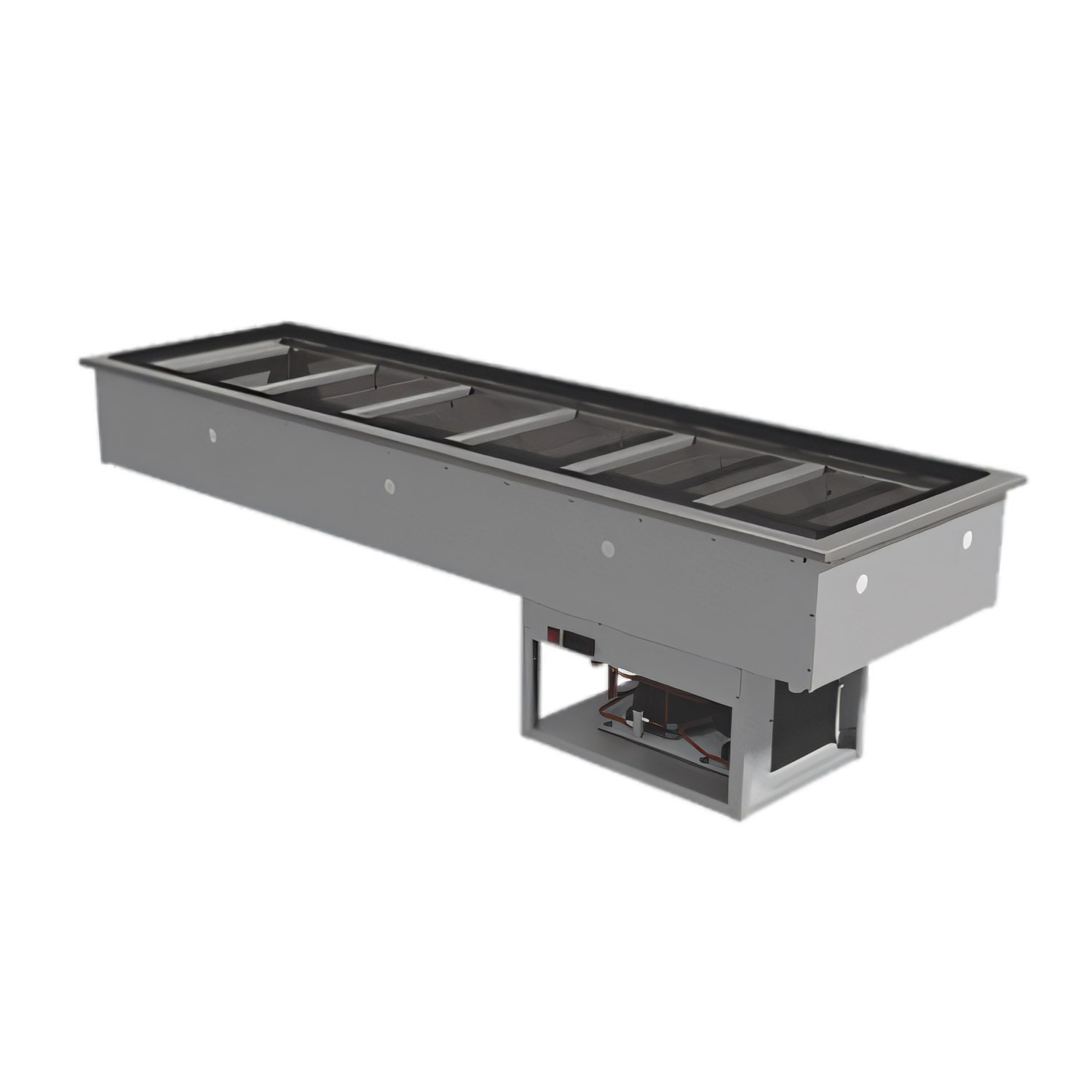 86-1/8" cut-out | (6) 12" × 20" wells | Self-containedDesigned for busy salad bars, buffets and grab-and-go counters, the DIRCP-6 keeps six full-size hotel pans of chilled product at safe serving temperatures while taking up virtually no extra floor space. Simply drop the unit into a 25-1/2" × 86-1/8" opening, plug it in and start serving.