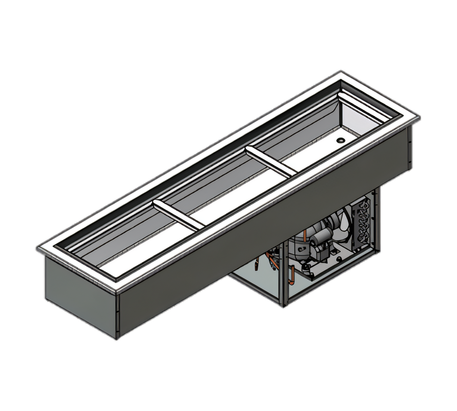 - Foamed-in-place insulation (1 ¼ in. walls / 2 in. bottom) drastically reduces heat gain for lower energy use.