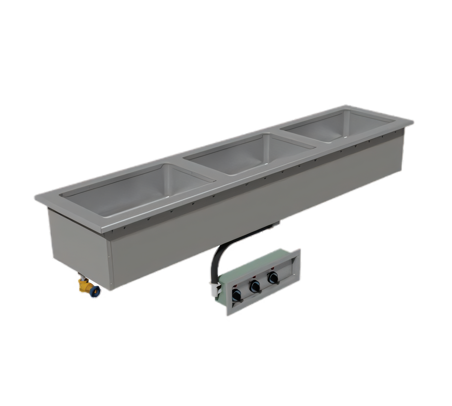 - (3) 12" x 20" sealed hot wells—each supplied with its own drain & gate valve for quick cleanup.
