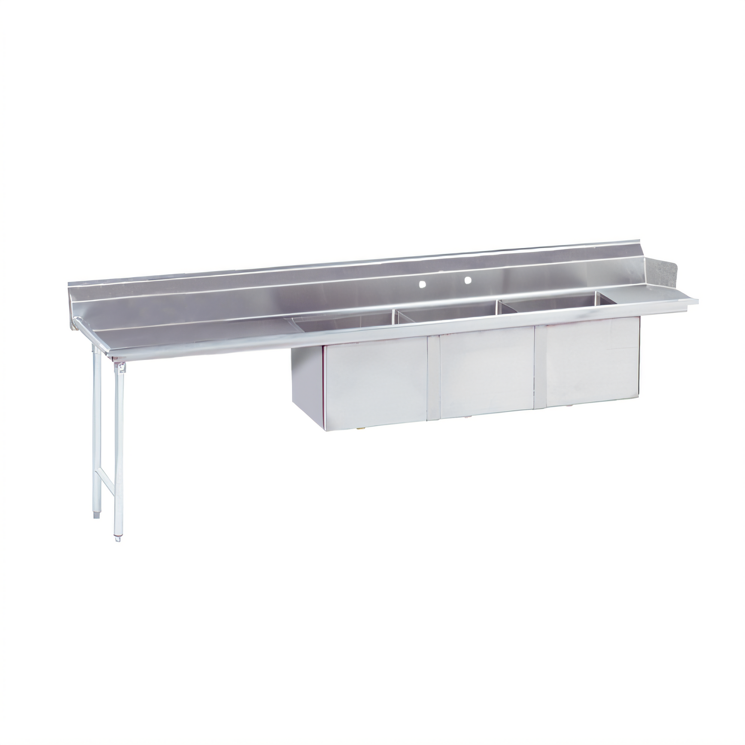 143" W • 83" Left Drainboard • Attaches to Left of Dish Machine OperatorBring maximum productivity – and stainless steel staying power – to your dish room with Advance Tabco’s extra-long DTC-3-1620-144L dishtable. Its fully welded, 143-inch work surface integrates three fabricated sink bowls and an 83-inch drainboard, giving your team the space they need to scrap, soak and stage ware before it enters the dish machine.