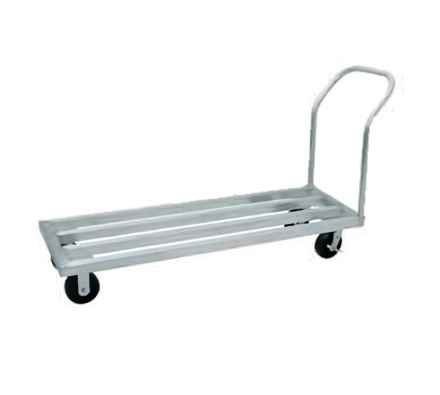 Special Value Dunnage Rack, mobile, square bar, one tier, 60"W x 20"D x 9-1/4"H, aluminum finish with 6" dia. casters, 36"H handle, 2400 lb. load capacity (evenly distributed) (Special Value NET Pricing)