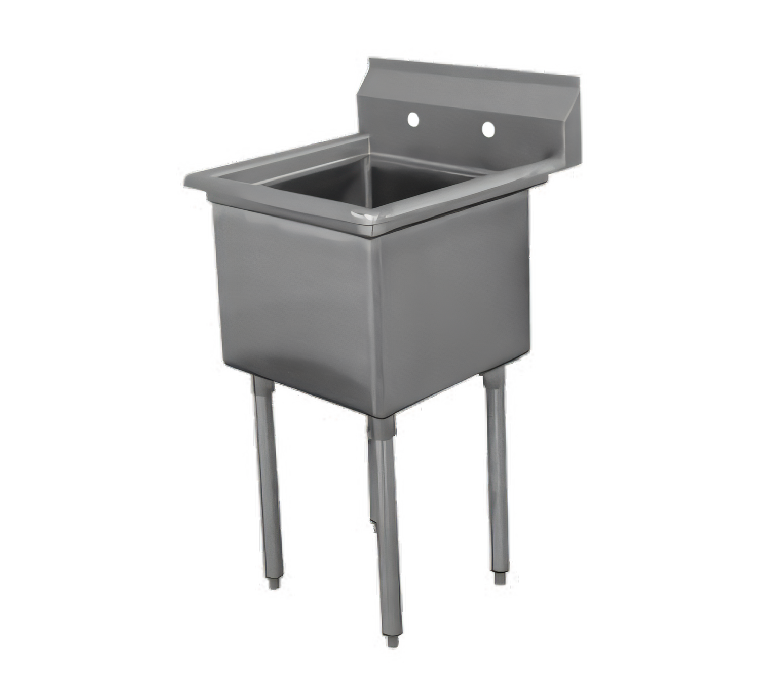 Special Value Fabricated Sink, 1-compartment, no drainboards, bowl size 15" x 15" x 12" deep, 18 gauge 304 stainless steel, tile edge splash, rolled edge, 8" OC faucet holes, galvanized legs with 1" adjustable plastic bullet feet, overall 20-3/4" F/B x 20" L/R, NSF