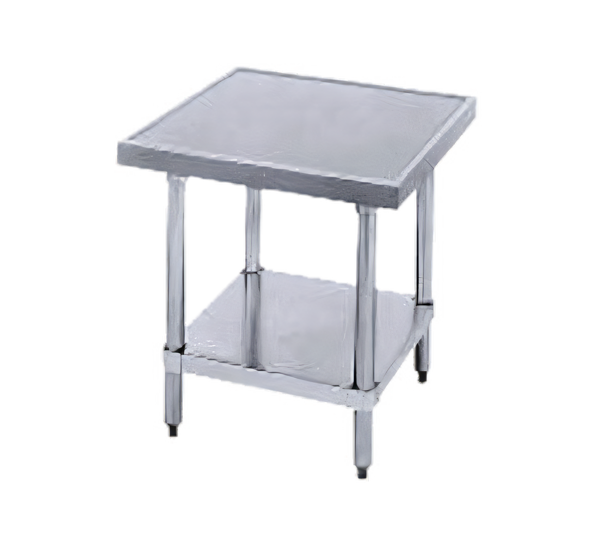 Equipment Stand, 36"W x 30"D x 24"H, 14/304 stainless steel top, galvanized adjustable undershelf & legs, adjustable plastic bullet feet, NSF