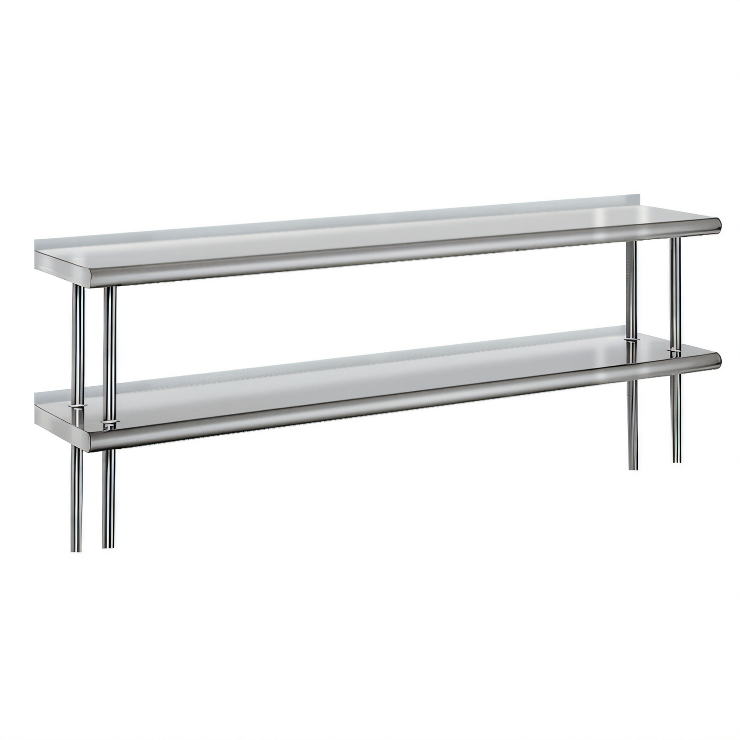 Table-mounted • 18 ga. 430 stainless steel • 1" rear up-turnInstantly double your storage without expanding your footprint. This 12-foot, two-tier Advance Tabco overshelf mounts directly to your work table, giving you rugged, easy-to-sanitize staging space right where you need it.