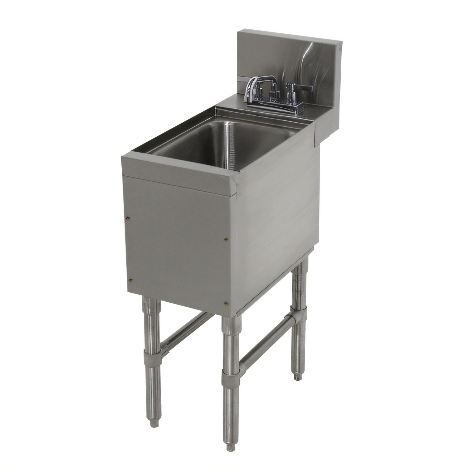Prestige Hand Sink, underbar, 12"W x 25"D x 36"H, 7" splash, stainless steel construction, includes: deck mount faucet with 6" spout, 10" x 14" x 7" deep bowl, NSF
