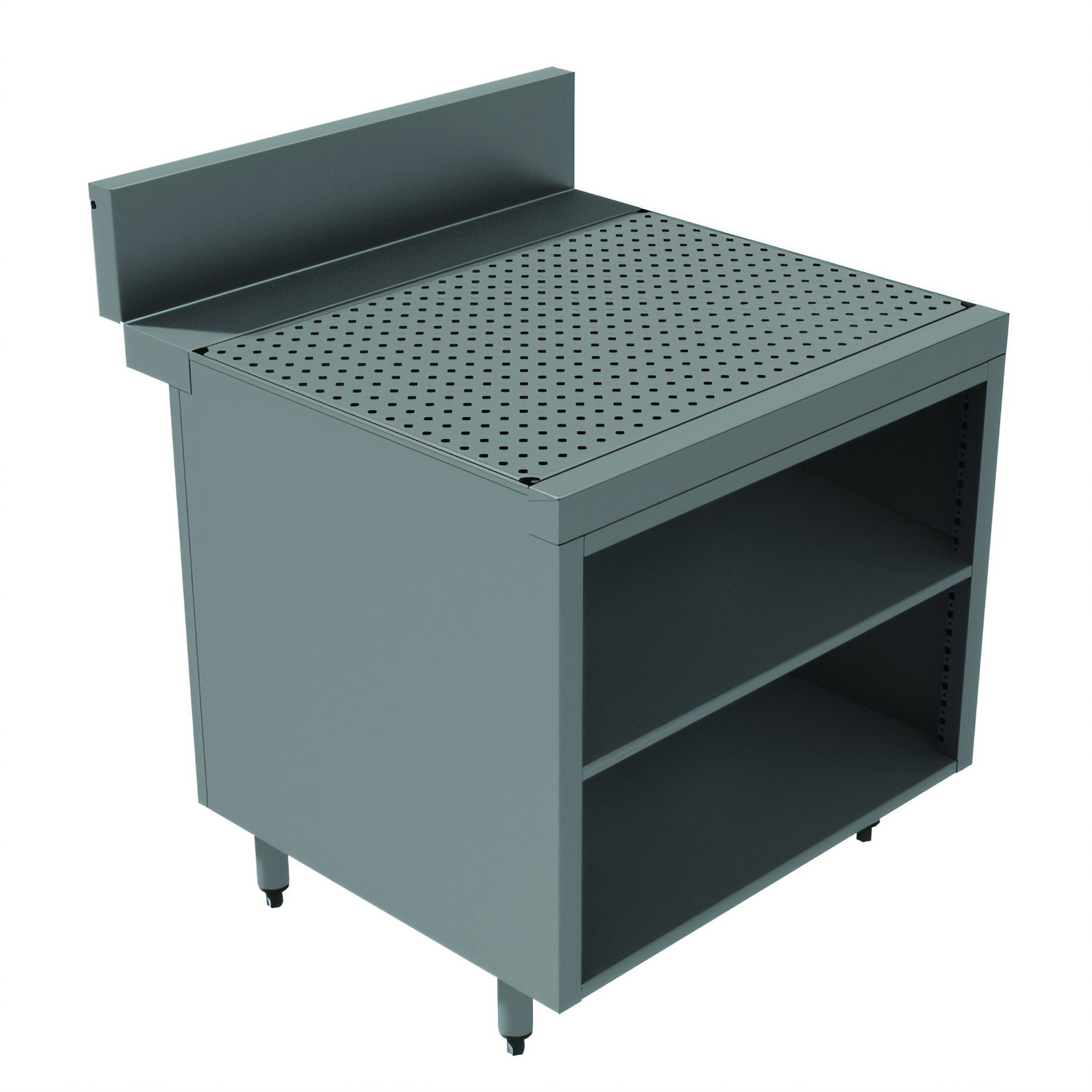Open Front • Model PRSCO-24-30-M • NSF CertifiedMaximize bar efficiency and keep glassware draining safely with the Prestige Signature Series underbar drainboard cabinet. Crafted from heavy-duty 300 series stainless steel, this 30" wide unit combines a removable perforated drainboard, generous backsplash and organized storage in one space-saving footprint.