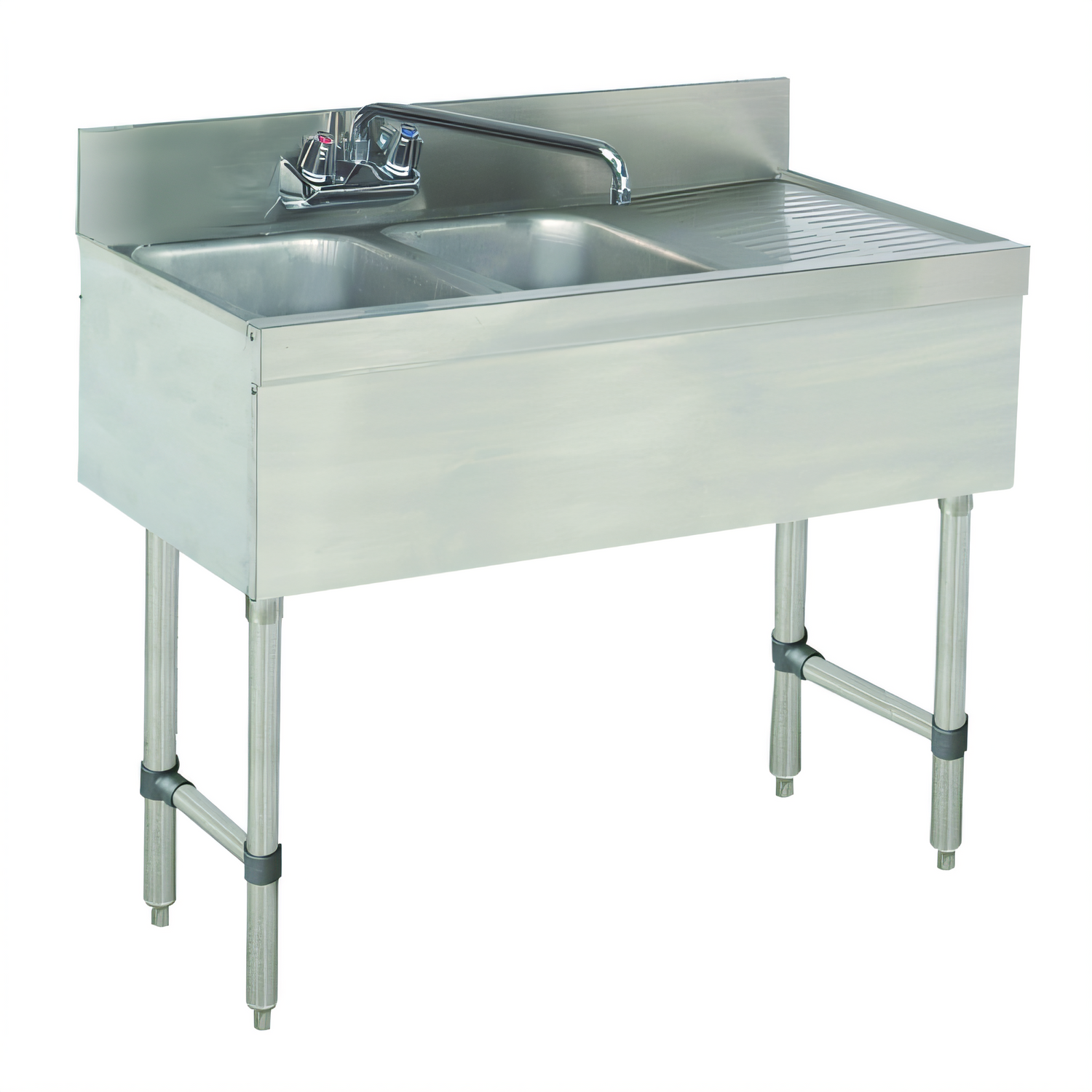 Model SLB-32R | Right-Side Drainboard | NSF ListedPerfect for tight bar and beverage stations, this Special Value Series sink gives you two deep-drawn bowls for rinsing and washing plus a 9" embossed drainboard for efficient air-drying—all in a compact 36" footprint.