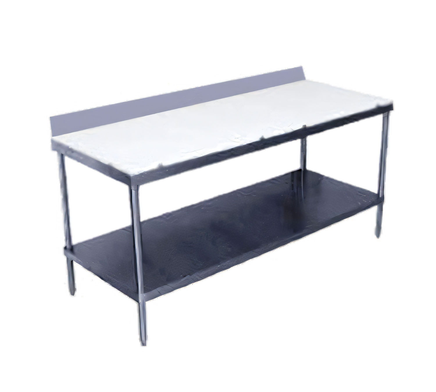 Advance Tabco • Model SPS-309 • NSF ListedEngineered for heavy-duty prep zones that demand durability, sanitation, and knife-friendly performance, the Advance Tabco Poly-Vance™ work table combines a reversible 5/8" thick HDPE cutting surface with an all-stainless frame, undershelf, and six-leg base. Its 9-ft span delivers expansive workspace while the 6" backsplash helps keep walls and floors protected from splatter.