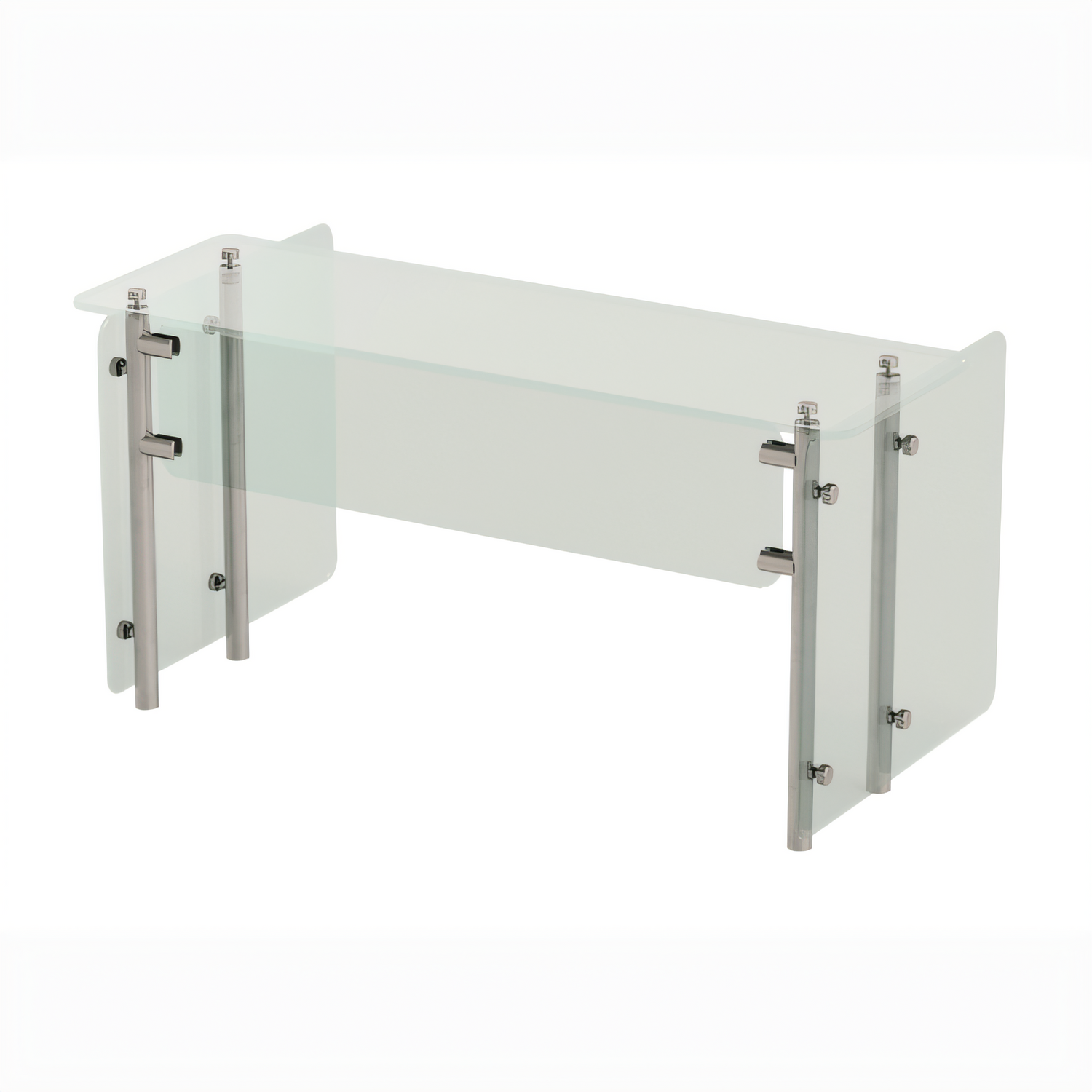 Food Shield, self service with fixed front glass, 144"W x 12"D x 18"H, with glass top shelf, 1/4" thick heat tempered glass front & side panels (side panels 18" deep to meet NSF requirements), 3/8" thick heat tempered top glass, maximum load on top glass 100 pounds evenly distributed weight, includes: additional center support leg