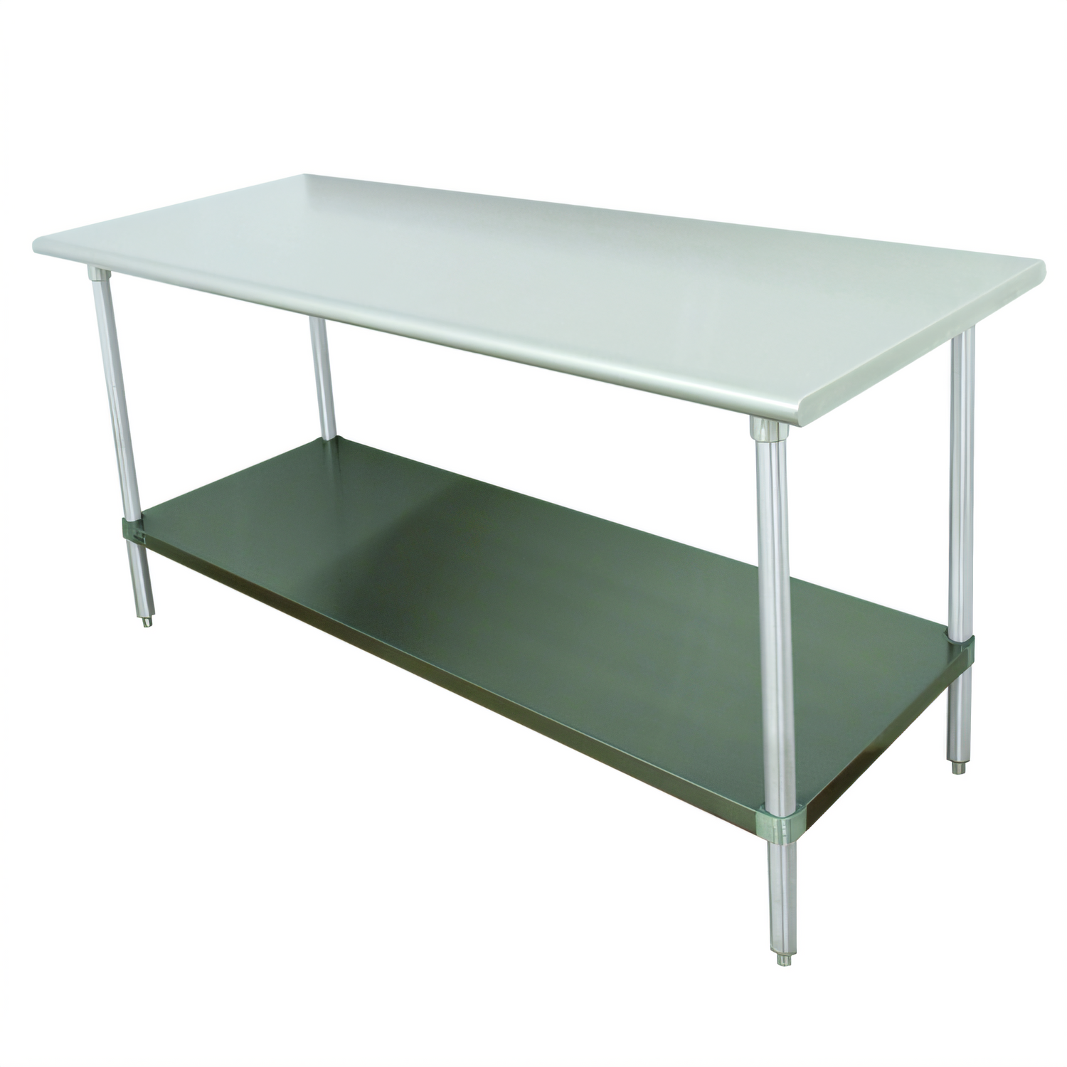 Advance Tabco TA-94-5 Stainless Steel Prep Table — heavy-duty commercial prep station with durable 16-gauge 304 stainless steel undershelf (5 linear ft.) for added storage and corrosion resistance. Ideal for professional kitchens, bakeries, and catering operations seeking long-lasting, hygienic workspace and ample under-counter organization. Trust Advance Tabco quality for reliable performance and easy cleaning.