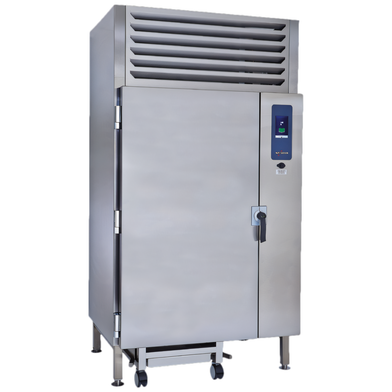 Quickchiller™ Blast Chiller, roll-in, self-contained with dual refrigeration systems, (40) 12" x 20" pan capacity, touch control with (20) preset menu options, (3) product temperature probes, quick freeze soft-chill hard-chill and holding modes, automatic defrost cycle, HACCP, stainless steel interior and exterior, (4) adjustable legs (NOT installed at factory), includes: One (1) Roll-in pan cart, (20) non-tilt pan support rails, 22-13/16" (678mm) hotizontal width & 2-9/16" (65mm) vertical spacing between rails, (10) stainless steel shelves, (1) removable drip tray & (1) cart handle , cULus, NSF
