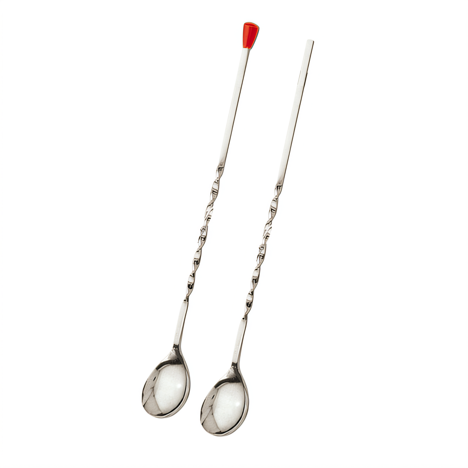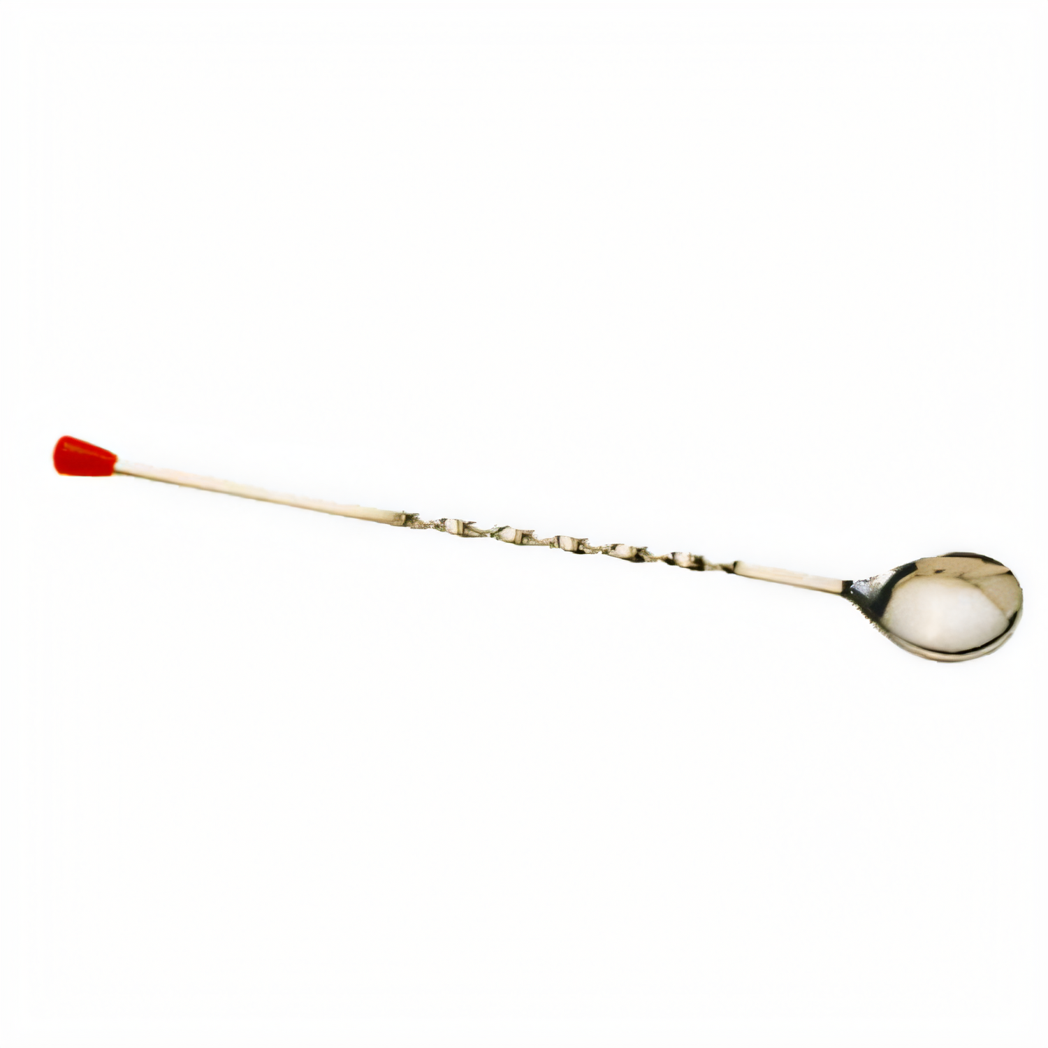 Bar Spoon, 11"L, twisted shanks, red knob, stainless