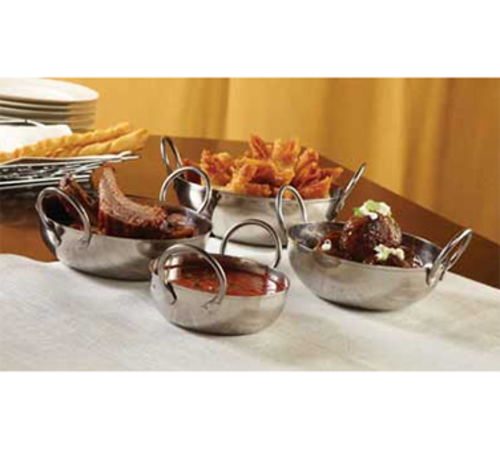 Balti Dish, 10 oz., 4-1/4" dia. x 2-3/4"H, 4-3/4" with handles, round, stainless steel, mirror finish