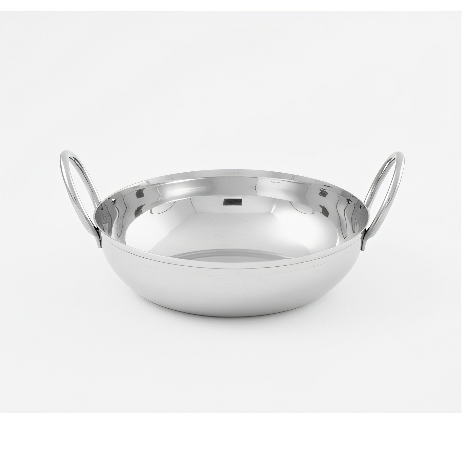 Balti Dish, 18 oz., 5-3/4" dia. x 2-3/4"H, 7-1/4" with handles, round, stainless steel, mirror finish