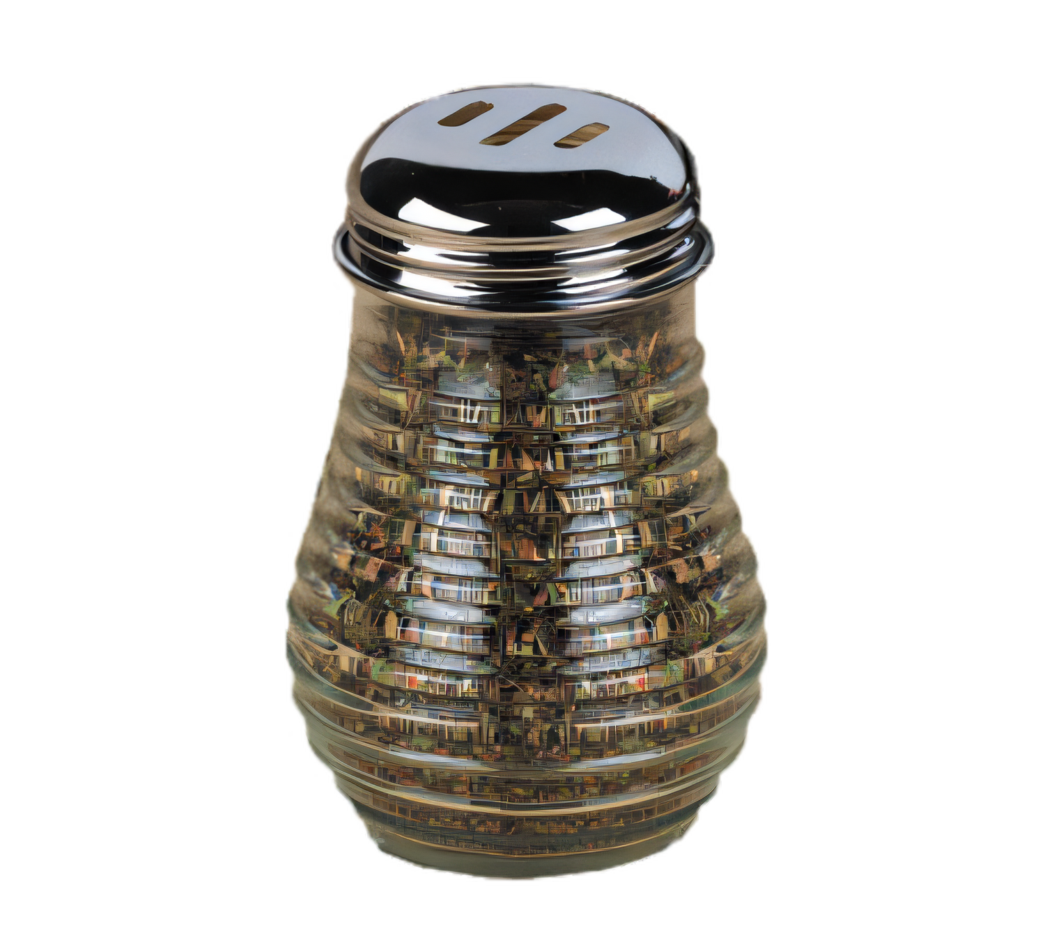 Spice Shaker, 6 oz., 2" dia. x 3-1/2"H, fluted, stainless steel slotted top, glass, clear