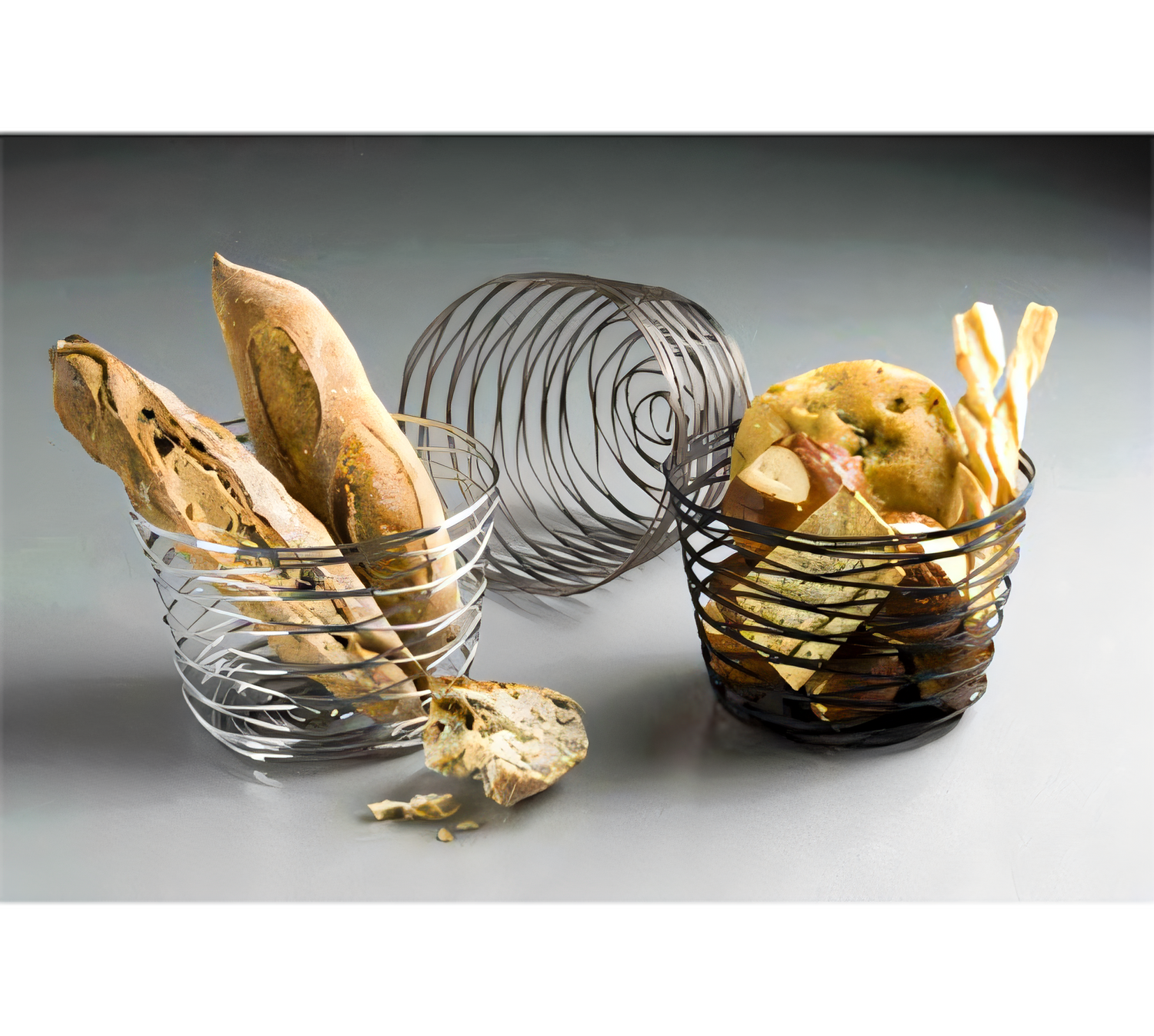 American Metalcraft 7" Birdnest wire serving basket, 5"H black finish—stylish, durable display for bread or fruit; hand wash only.
