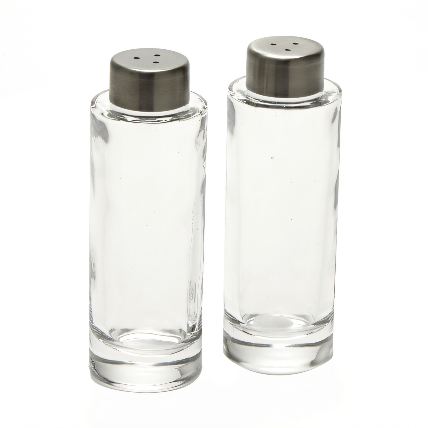 Vintage Salt & Pepper Shaker Set, 2 oz., 1-1/2" dia. x 4-1/2"H, round, stainless steel and glass