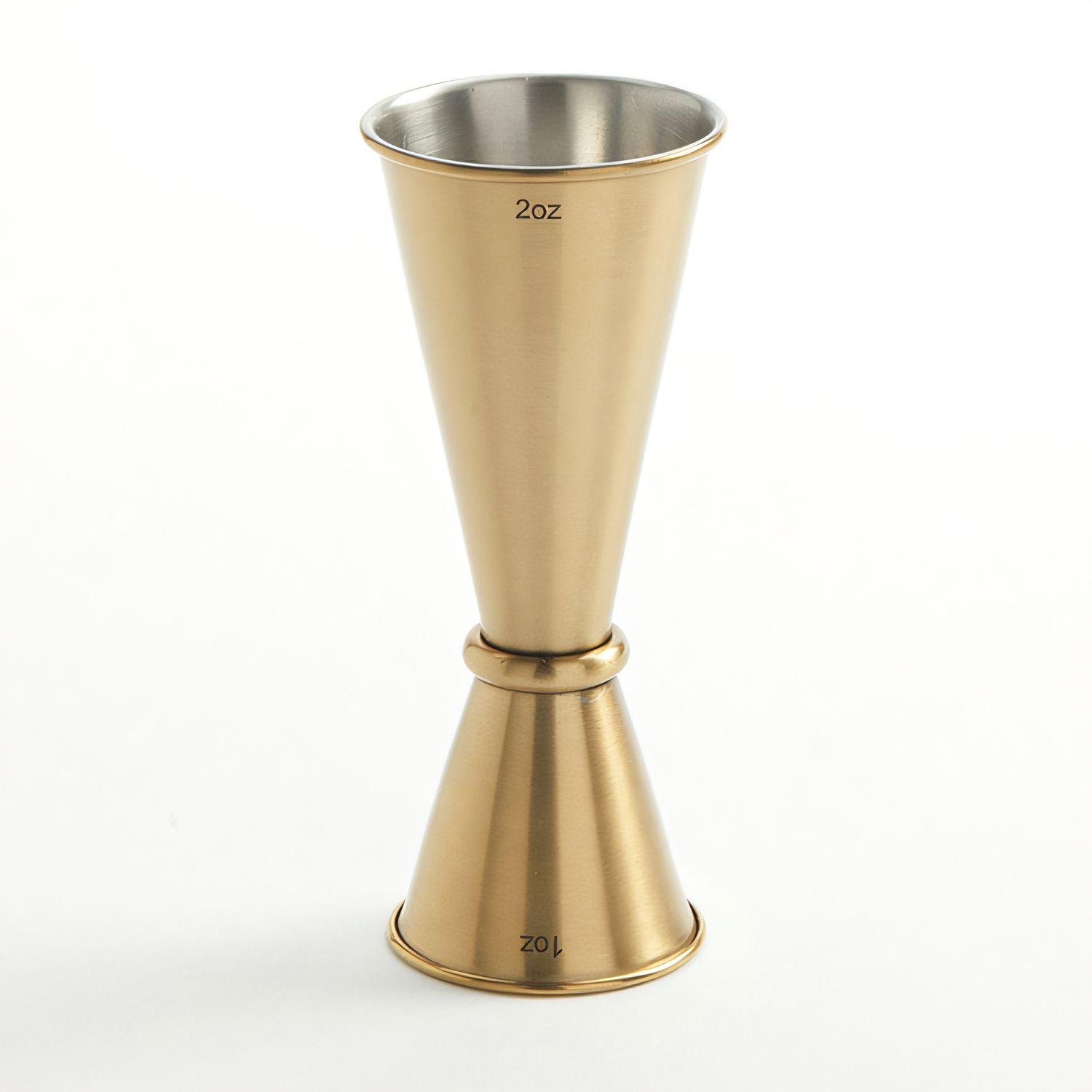 Jigger, 1 oz. x 2 oz., 2" dia. x 4-3/4"H, rolled edge, stainless steel, gold finish