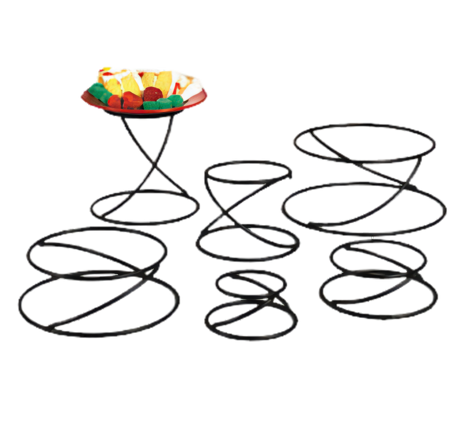 Contempo™ Pizza Stand/Riser, 7-1/8" top dia., 9-1/4" bottom dia., 7"H, round, swirl design, hand wash only, wrought iron, black (hand wash only)
