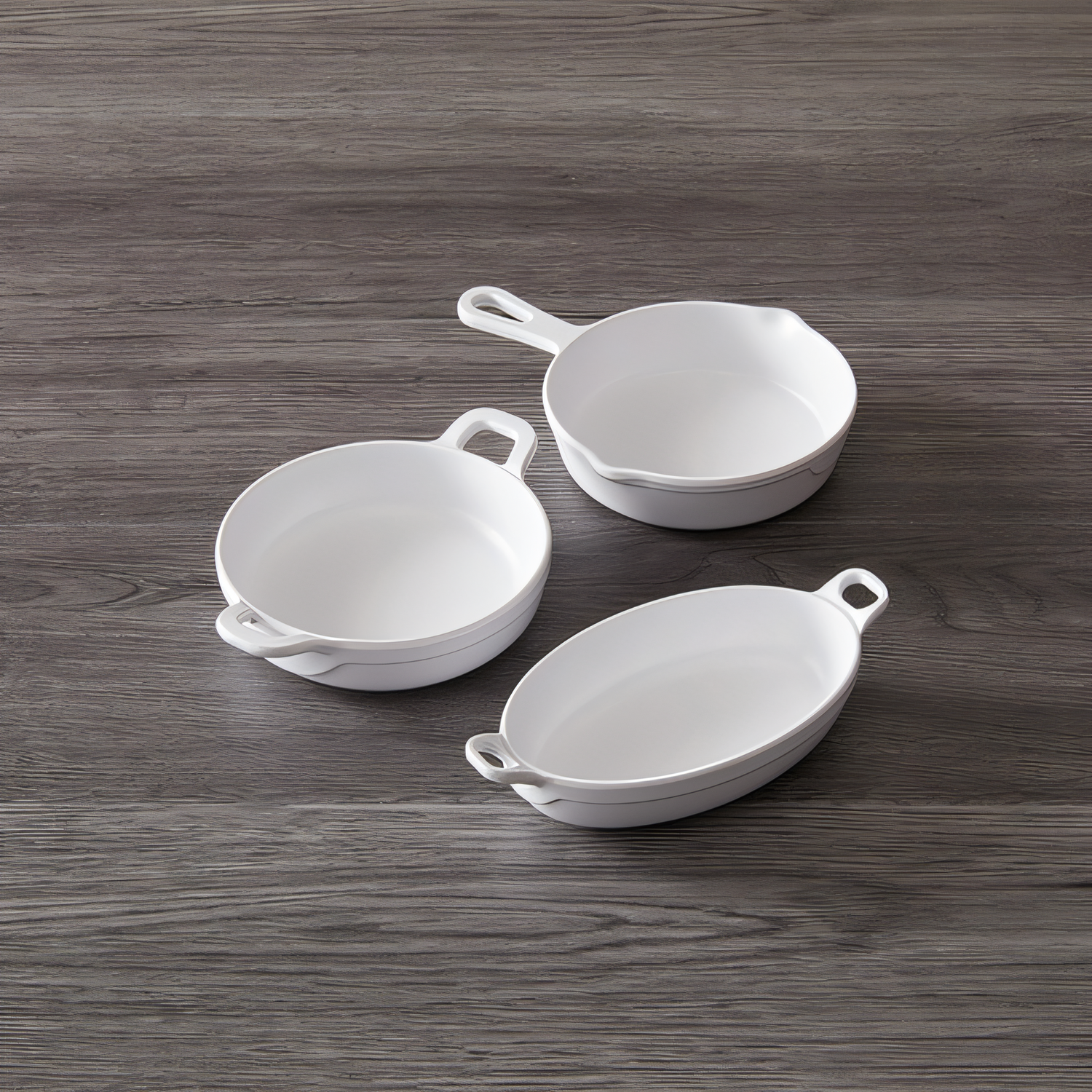 American Metalcraft 5 oz oval melamine casserole dish, durable white, compact 4.75"x3", 1.25" deep with 6" handle for easy serving.