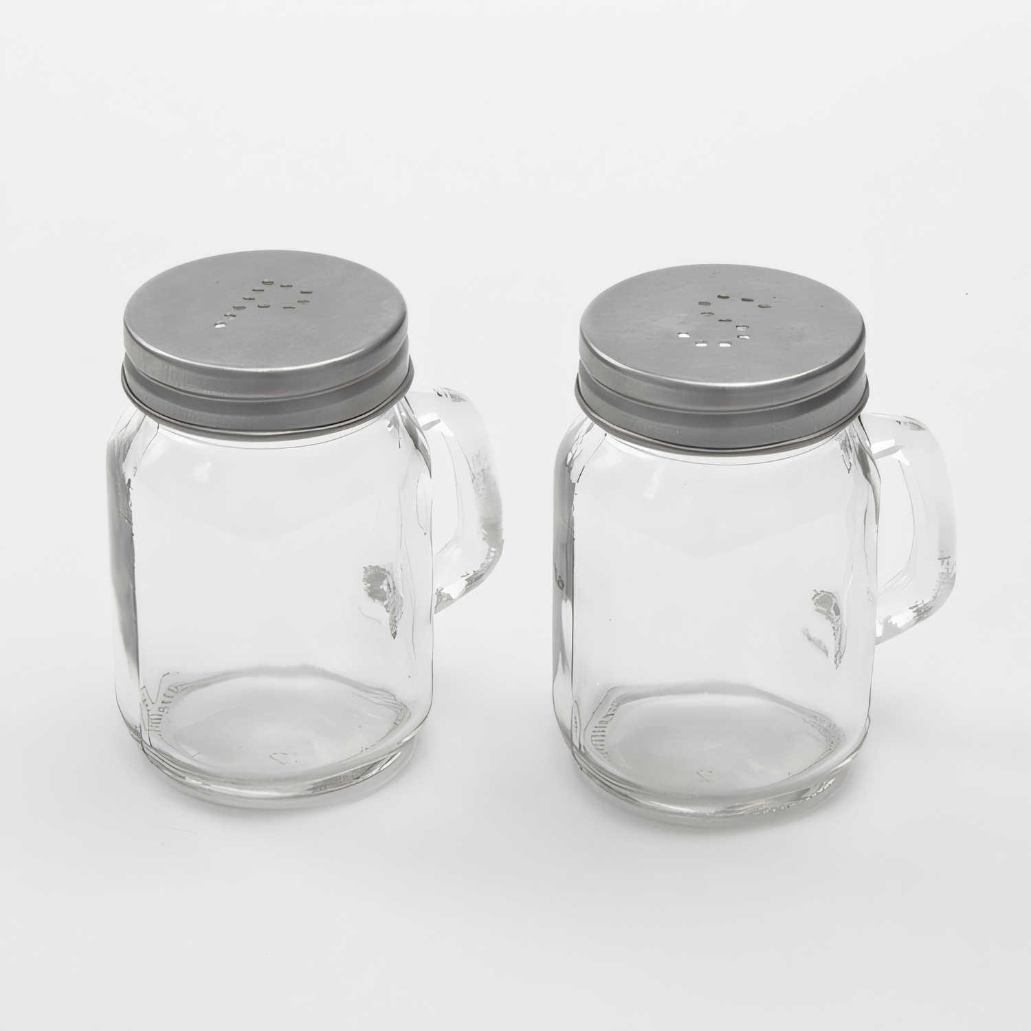 Mason Jar Salt & Pepper Shaker Set, 4 oz., 5"L x 4-3/4"W x 4"H, perforated top, glass, clear