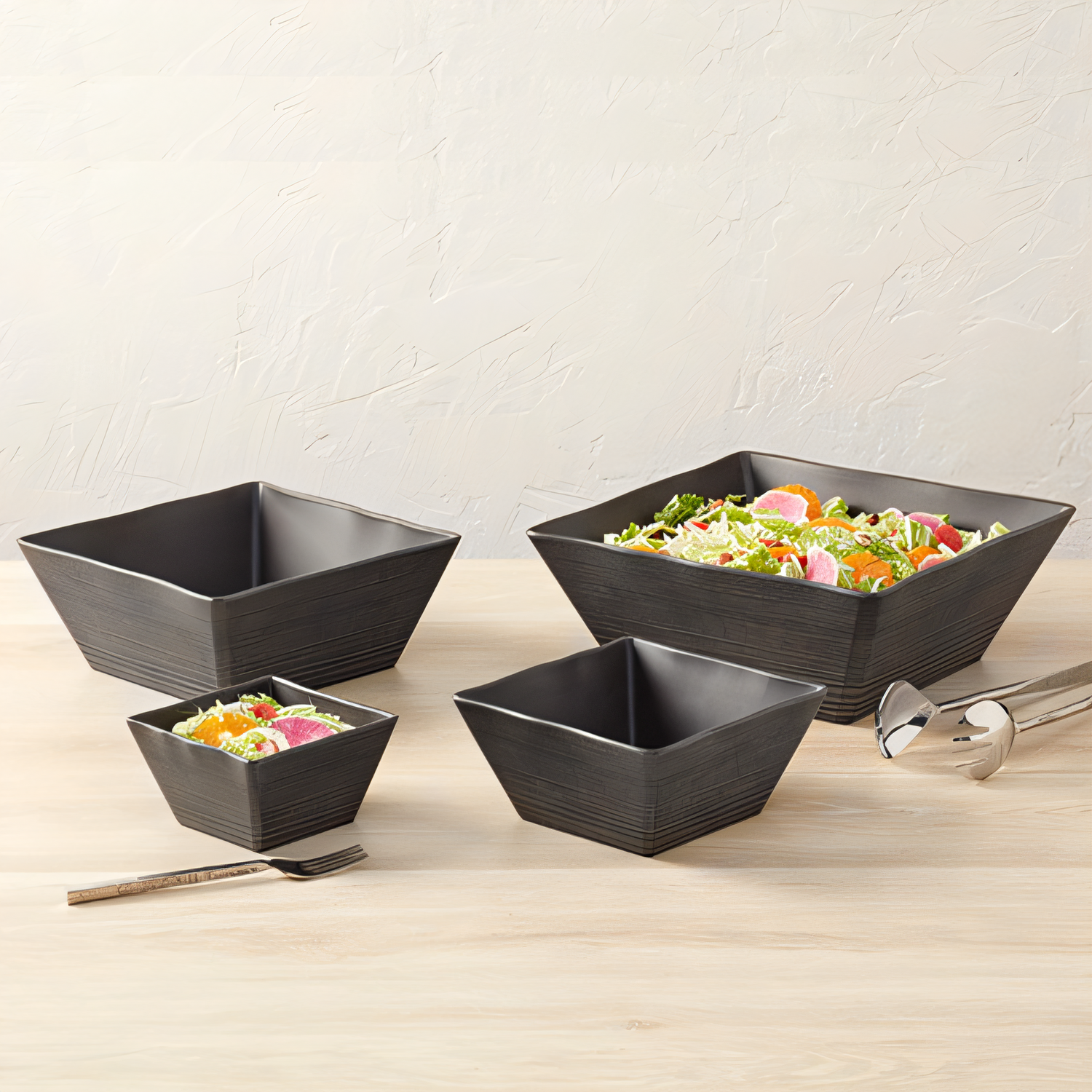 American Metalcraft WMSQ94 125 oz walnut melamine square bowl — durable, lightweight, scratch-resistant serving solution.