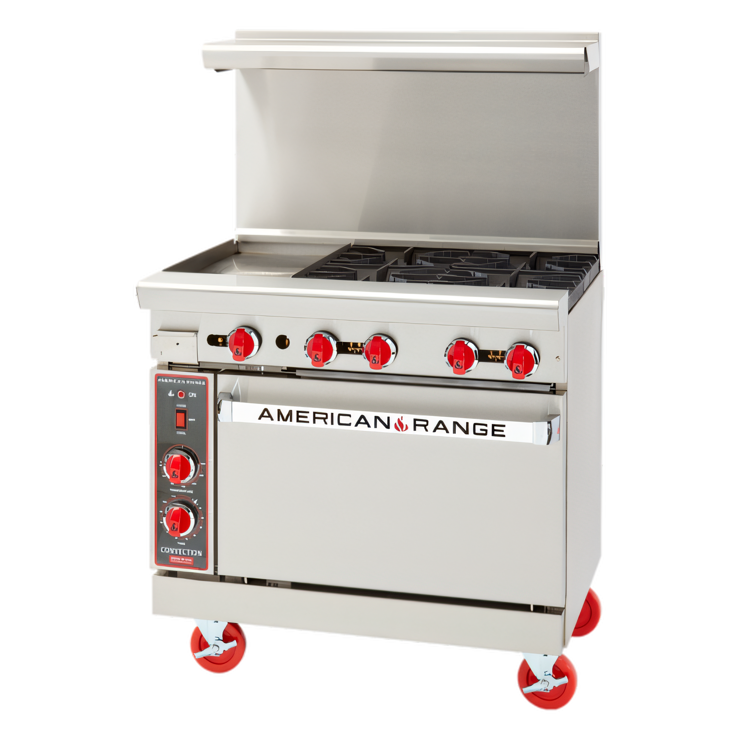 American Range AR-12G-4B 36" Gas Restaurant Range w/ 12" Griddle & 4 Open Burners