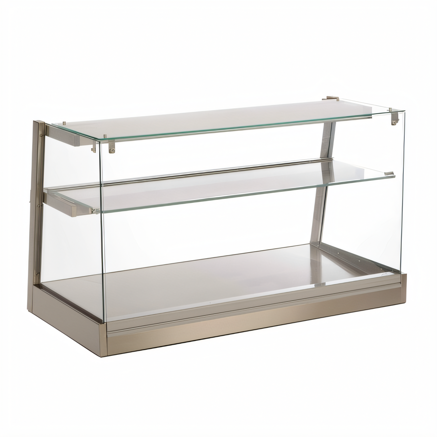 Heated Display Cabinet, squared front edge, two tiers, angled open back, temperature range 150° F to 165° F, NEMA 5-15P, 120v/50/60/1-ph, 1000w, 8.3 amps, cETLus, ETL-Sanitation