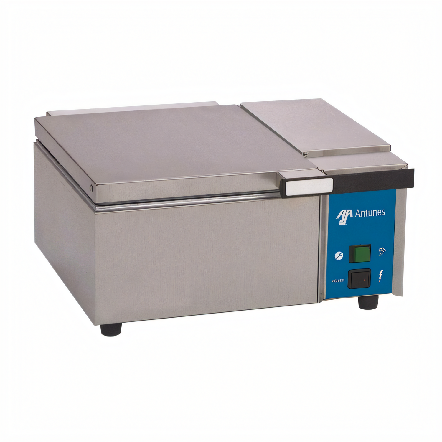 Antunes DFW-100 steam food warmer: stainless steel, 1/2-size pans, adjustable steam, self-contained tank, 1800W reliability.