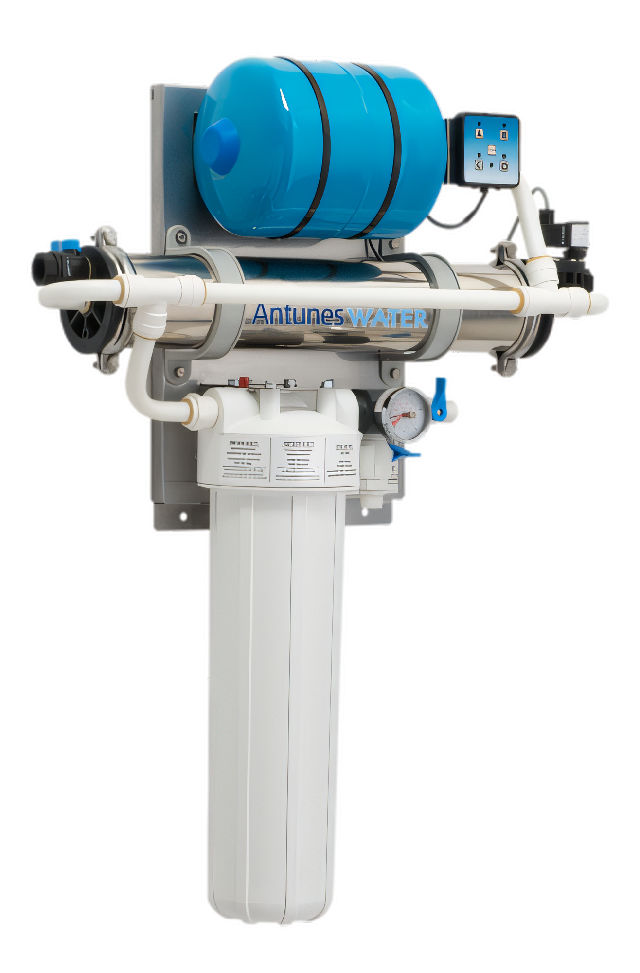Antunes Vizion VZN-521HE water filter: 8 GPM, .015µm ultrafiltration, 500k gal carbon life, self-cleaning, stainless housing, global plug support