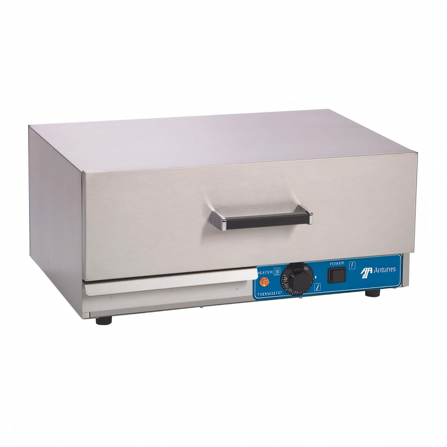Antunes WD-21A-9400110 drawer warmer: thermostatic moist heat, holds 40–50 buns, stackable, 120V 1000W, cETLus certified.