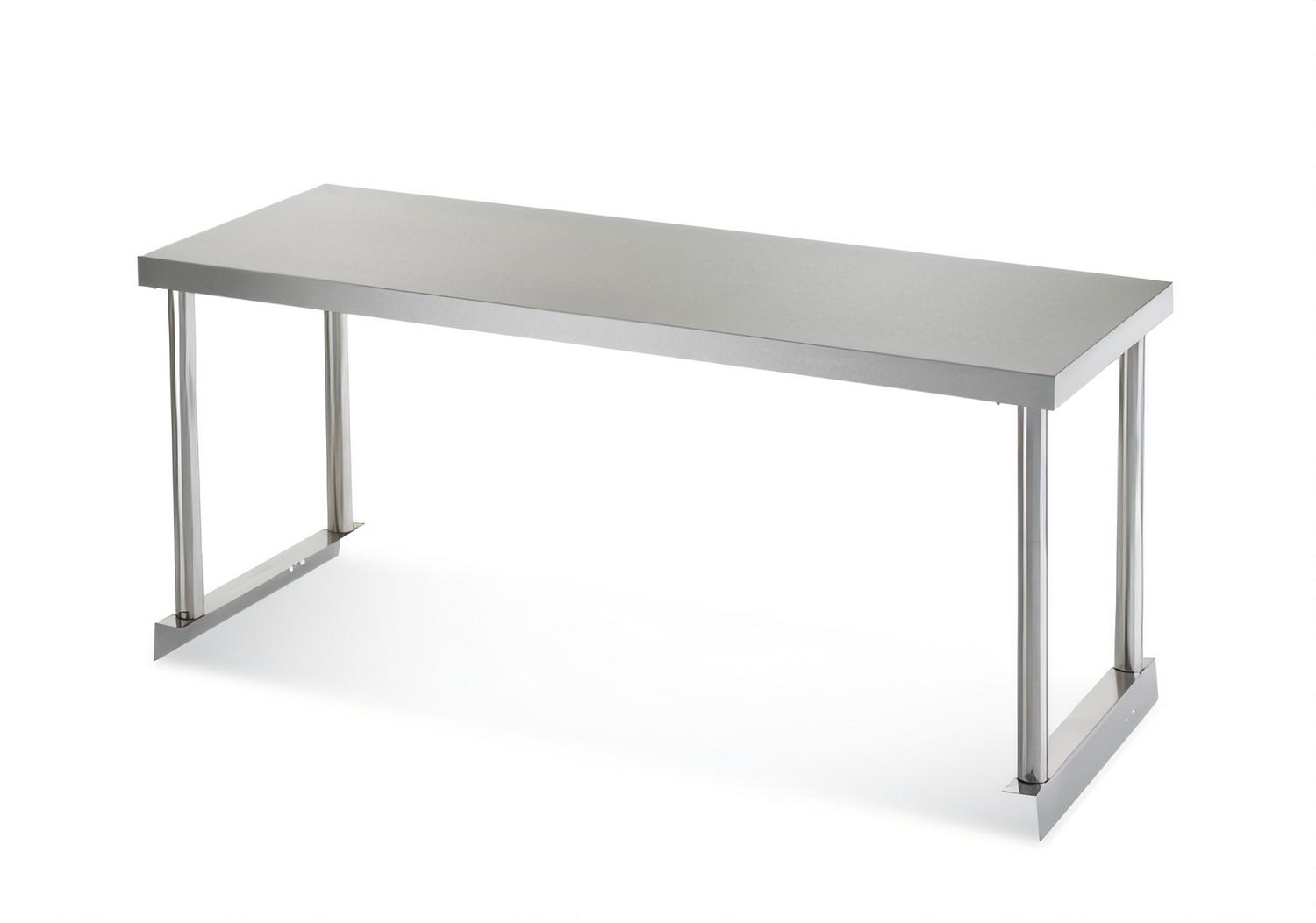 Single Overshelf, 48”W x 18”D x 20”H, reinforced full length hat channels on bottom of shelf, includes hardware to assemble, mounts on the sides of the prep table, stainless steel self-tapping screws recommended for installation, 22 gauge 304 stainless steel construction, fits models AST/AMT48R