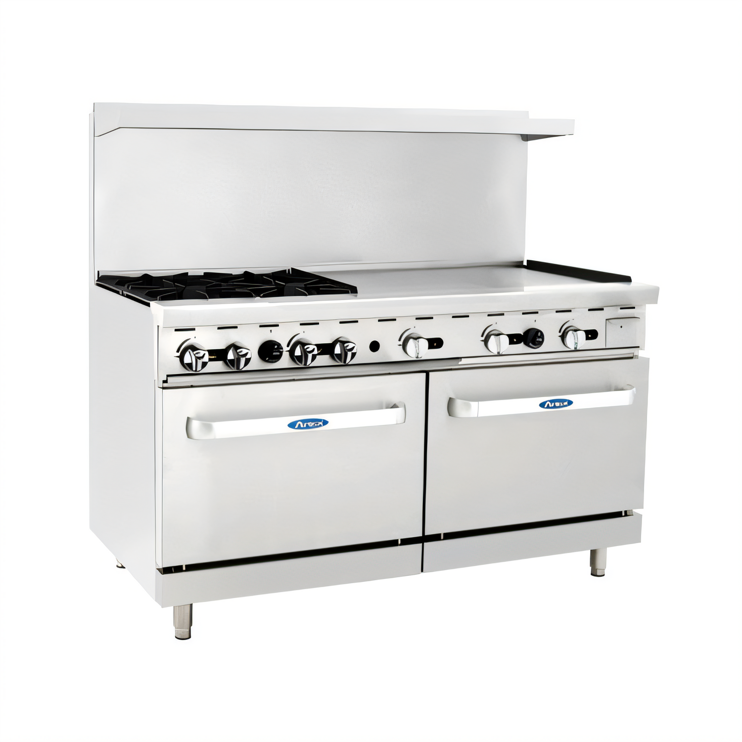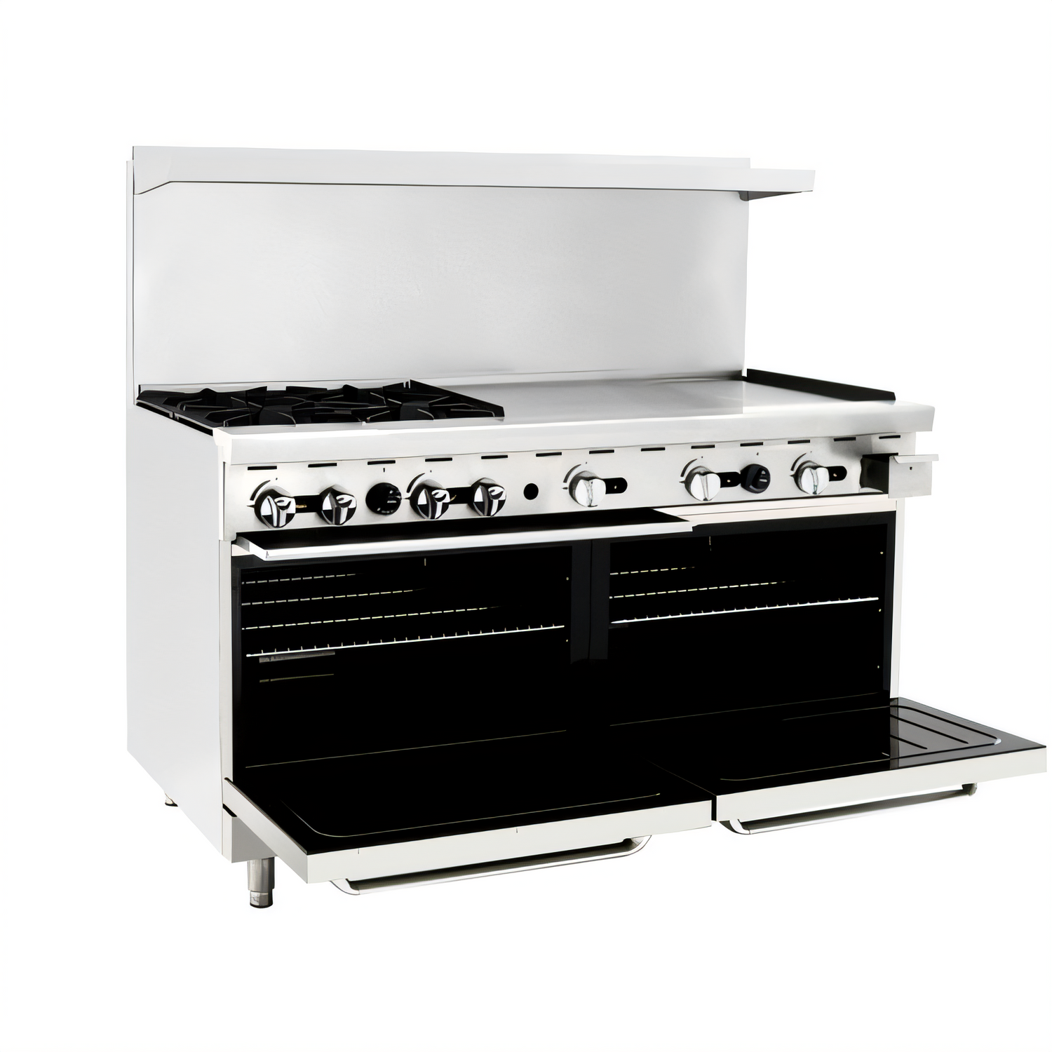 CookRite 60" Natural Gas Range w/ 4 Burners, 36" Right-Side Griddle & Double Ovens