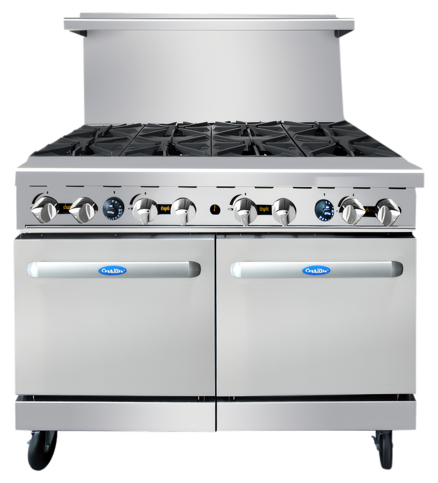 By Atosa USA • 304,000 BTU • PropaneThe CookRite AGR-8B packs eight high-performance open burners and two independent 20-inch ovens into a rugged, all-stainless 48" frame. Built for demanding commercial kitchens, it delivers the power, capacity and easy-to-clean design operators expect from Atosa.