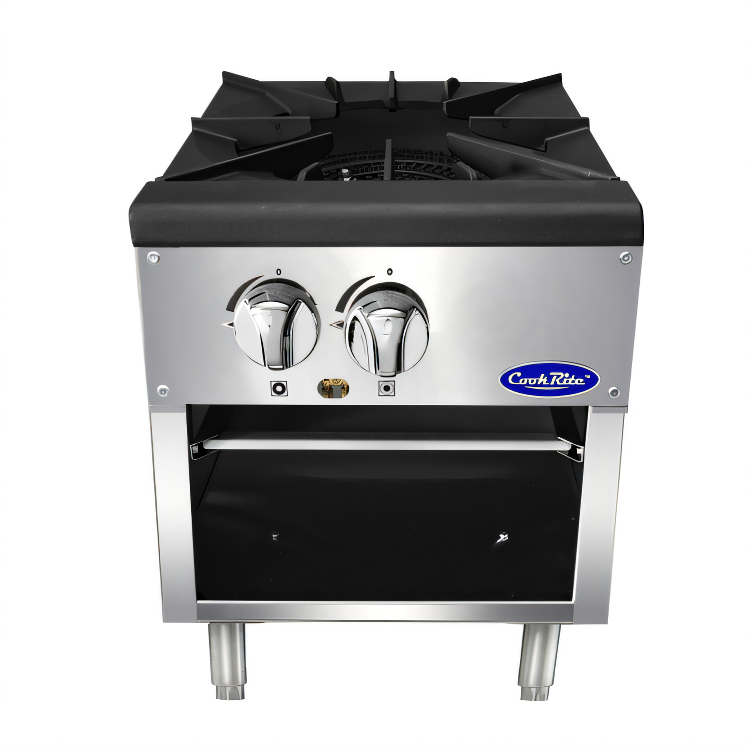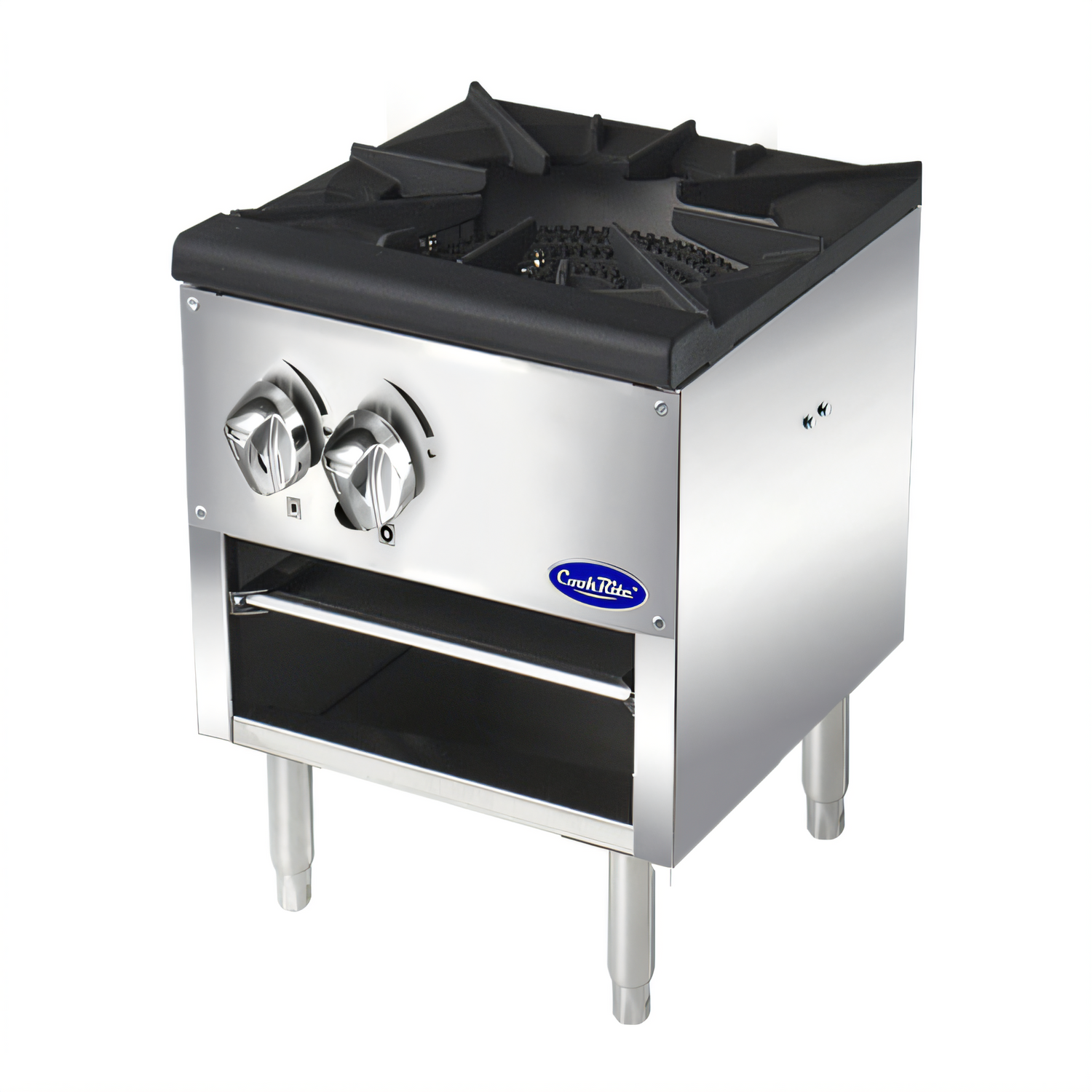 CookRite Stock Pot Stove, gas, (1) three-ring cast iron burner, full width removable stainless steel drip pan, two manual controls operate inner & outer rings independently, stainless steel sides and front valve cover, stainless steel legs, 80,000 BTU, cETLus, ETL-Sanitation