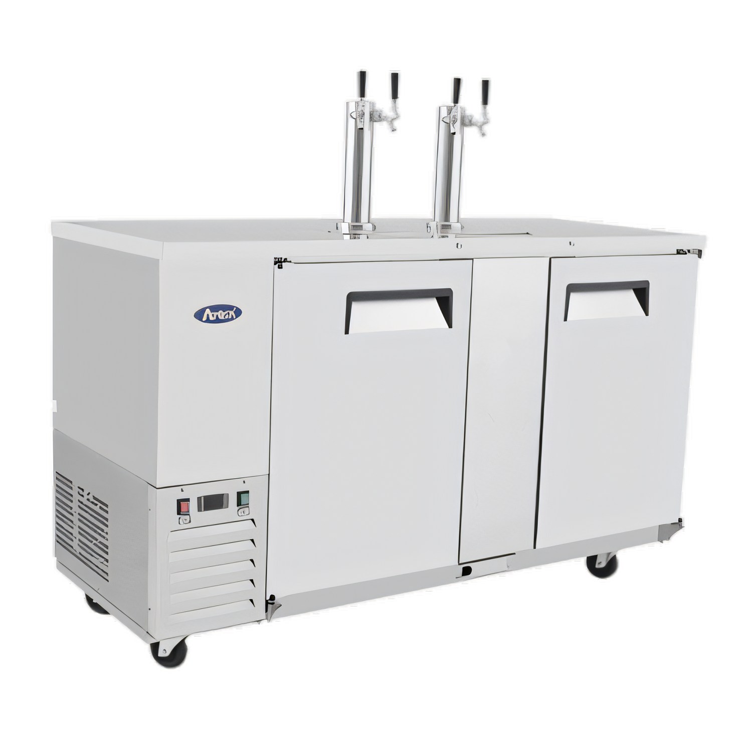 21.5 cu ft • (3) 1/2-Barrel Capacity • Dual 2-Faucet TowersServe ice-cold pints with confidence. Designed for busy bars, taprooms, and banquet venues, the Atosa MKC68GR combines a rugged all-stainless build with efficient, eco-friendly refrigeration that keeps kegs at a consistent 33 °F – 40 °F. Dual locking doors, pre-installed casters, and included towers/taps make this unit a true plug-and-pour solution.