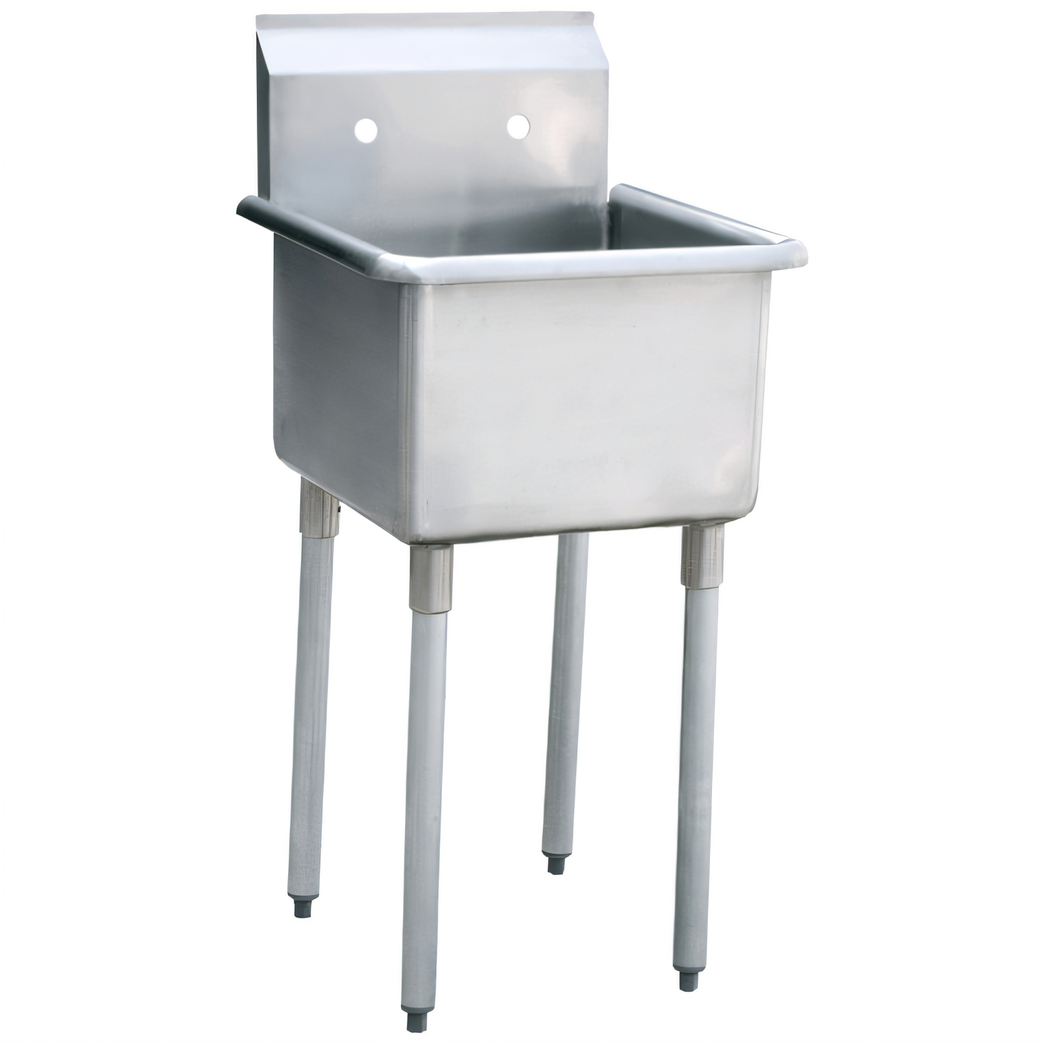 MixRite Compartment Mop Sink, 21"W x 21-1/2"D x 44-1/2" H, formed from a single sheet, 18 ga stainless steel, 18"Lx18"Dx13"H bowl size, creased and angled drain boards for easy drainage, galvanized legs and adjustable ABS bullet feet, NSF (must be purchased in quantities of (6 each), unless doing will call pick up)