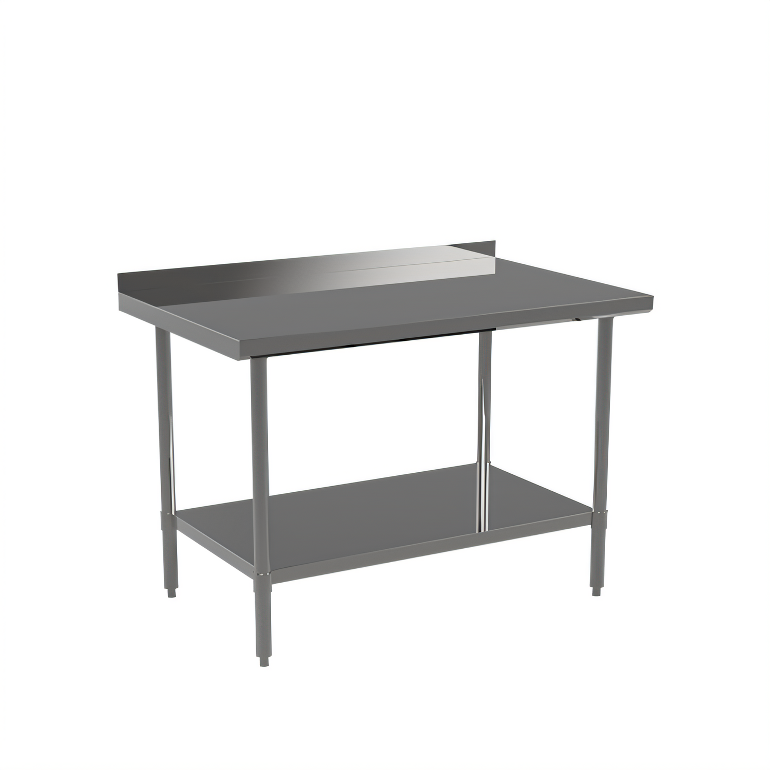MixRite Work Table, 72"W x 24"D x 36"H, 2" rear edge up, 18/430 stainless steel top with turned down edges, 18/430 stainless steel adjustable undershelf & legs, adjustable bullet feet, NSF, KD