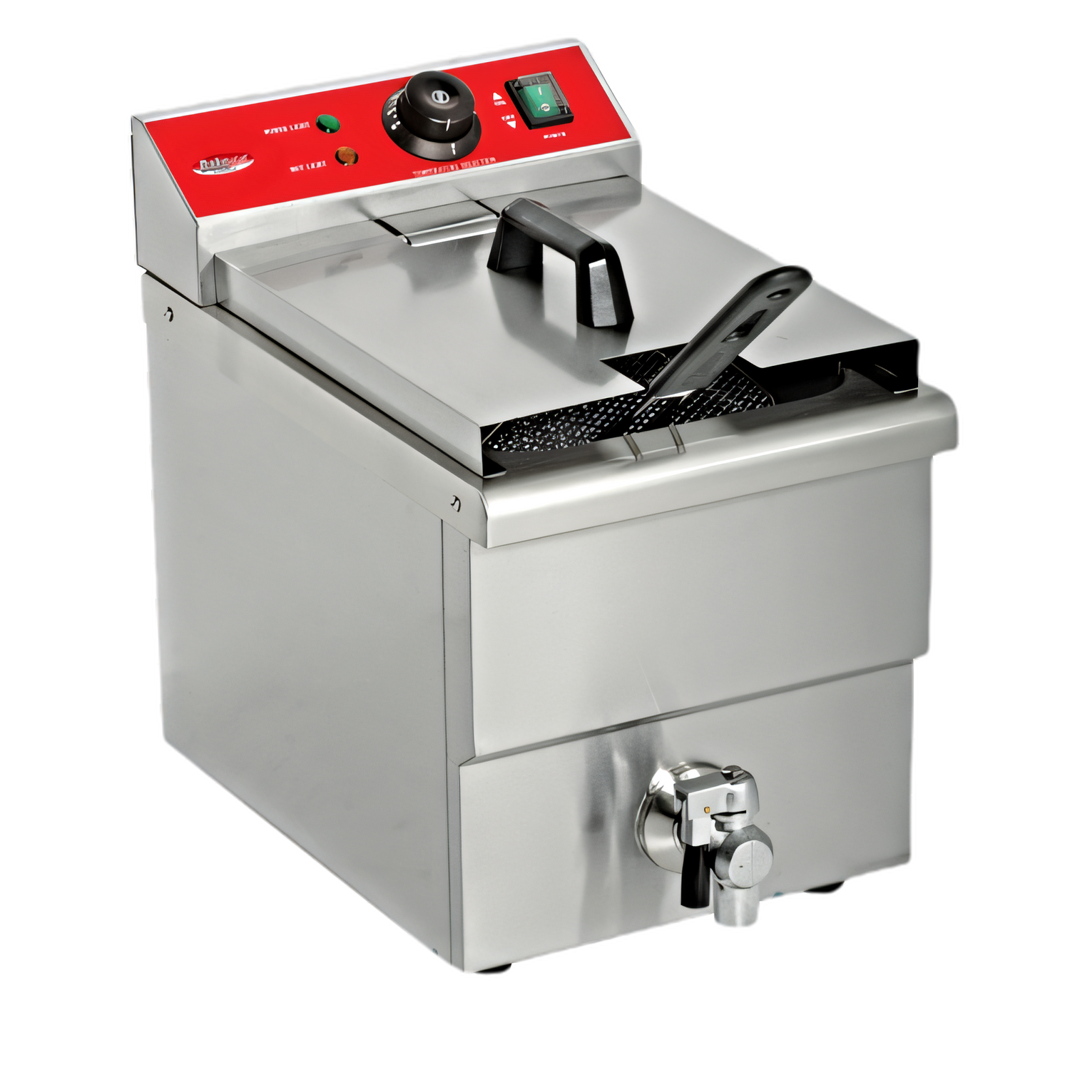 Single Mini Countertop Fryer, electric, 12.2"W x 17"D x 16.2"H, stainless steel construction, 6-liter oil capacity, safety thermostat for overheat protection, safe oil drainage via valve, 3250 W, 15.6 amps, 208v/60/1-ph, CE, cETLus, ETL-Sanitation