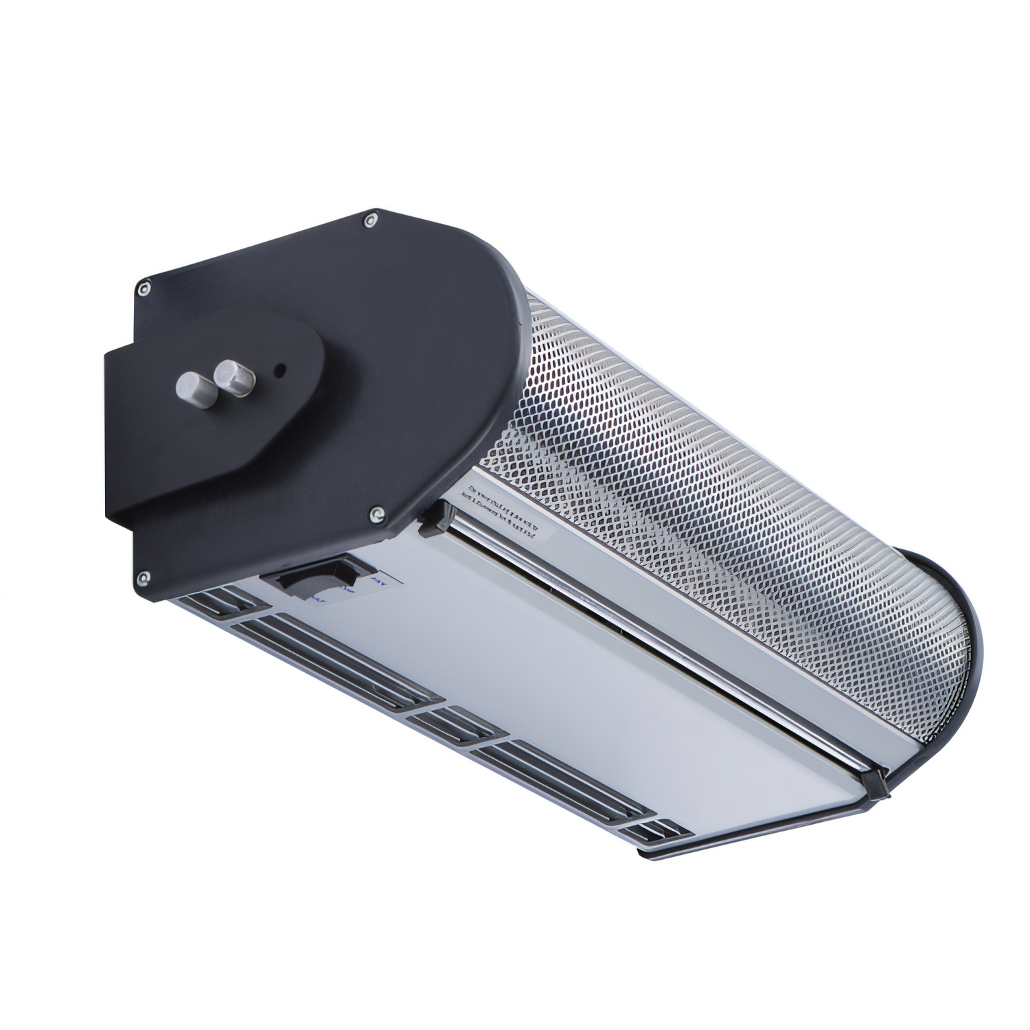 Drive-Thru Air Curtain, 26" long, electric heated, (1) 1/12 hp & (1) 1/20 hp motor, environmental separation & insect control for drive-thru windows up to 3' high, "No Tool" filter removal, "Mount Anywhere" bracket system, powder coated extruded aluminum exterior cabinet, interior mounting, 2kW, UL, cULus, MADE IN USA