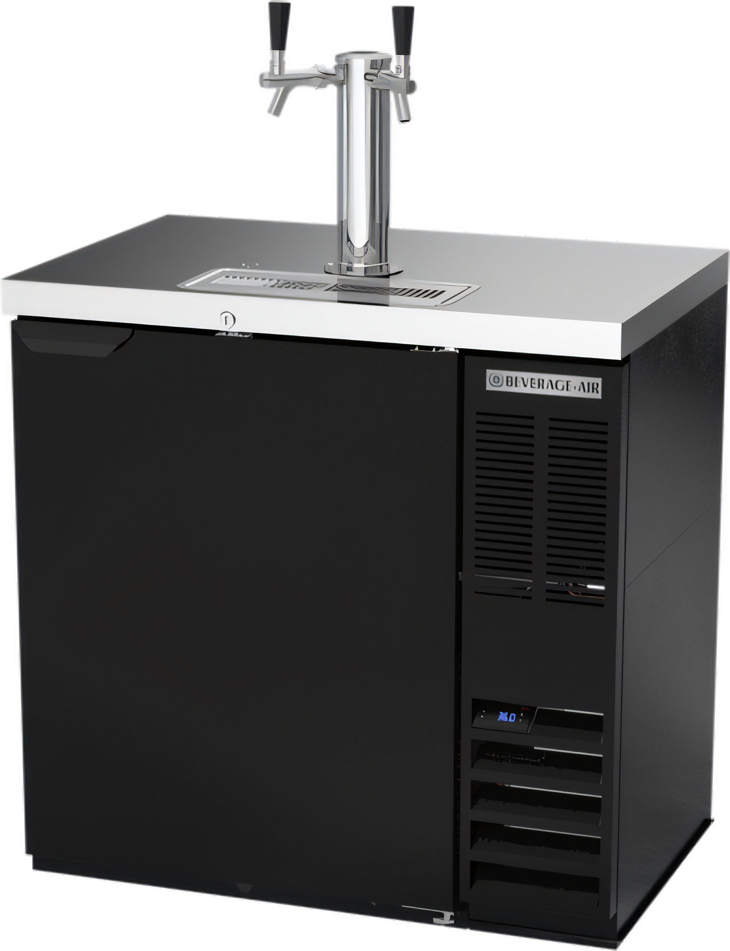 Draft Beer Cooler, 36"W, 51-1/4"H, 8.31 cu. ft., (1) door, (1) 1/2 keg capacity, door locks, one dual faucet column, black painted exterior, stainless steel top, galvanized interior with reinforced stainless steel floor, self-contained refrigeration, R290 Hydrocarbon refrigerant, 1/4 HP, cULus, UL EPH Classified, UL-Sanitation